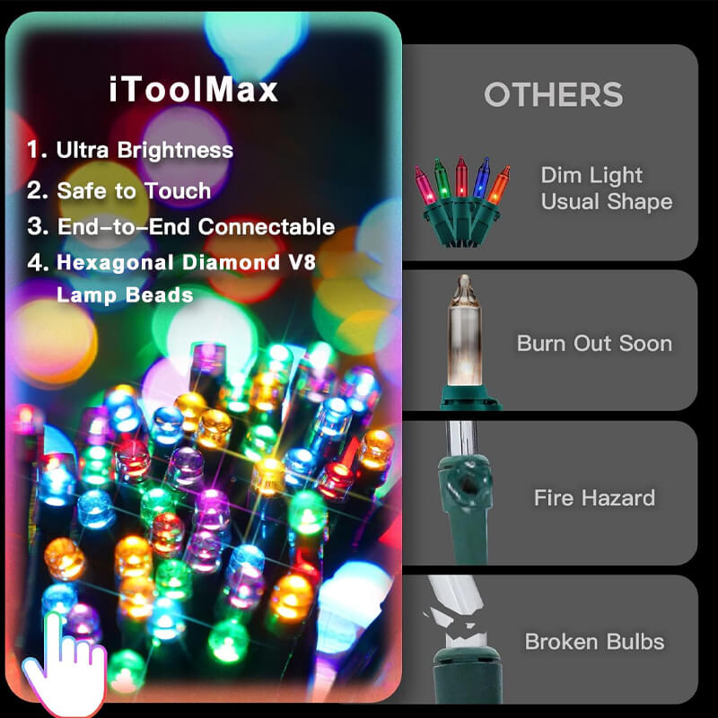 240pcs hexagonal diamond V8 lamp beads, bigger and brighter than others. With up to 19 light modes, combination, in waves, sequential, slogs, chasing/flash, slow fade, twinkle/flash, etc, much more 11 modes than others light brand, achieve more various lighting show.