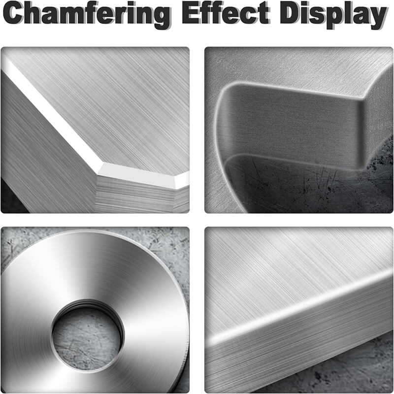 C blades for 0-1.5mm 45° angle chamfering and R blades for 1.5mm round-edge chamfering, versatile for chamfering various angles such as straight edge, inner/outer circle and polygon, U-shaped inner groove, ellipse circle, external bevel and other irregular shapes.