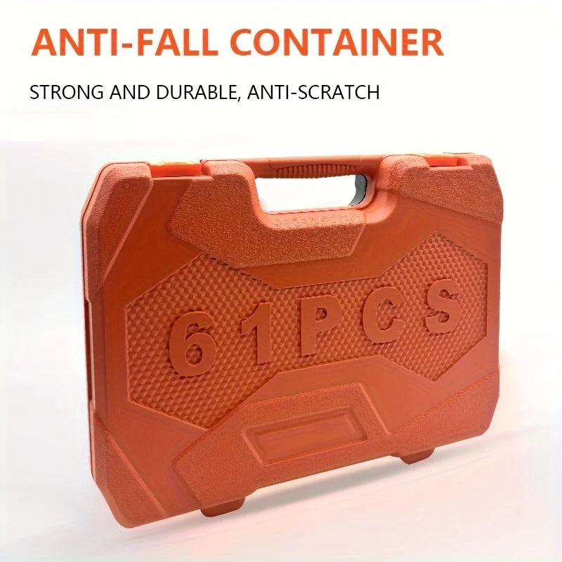 • 61 Essential Tools in One Set: Includes metric sockets, ratchet wrench, extension bars, bits, and more for versatile repair jobs.