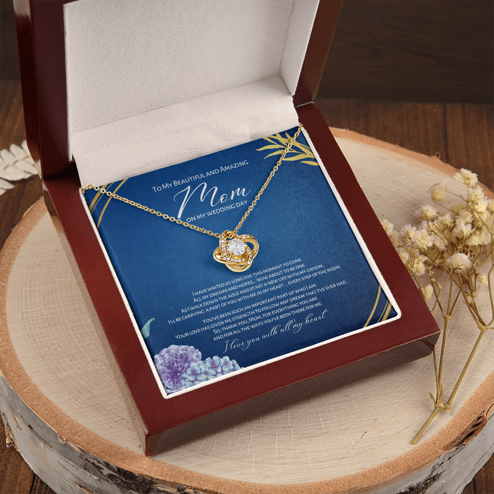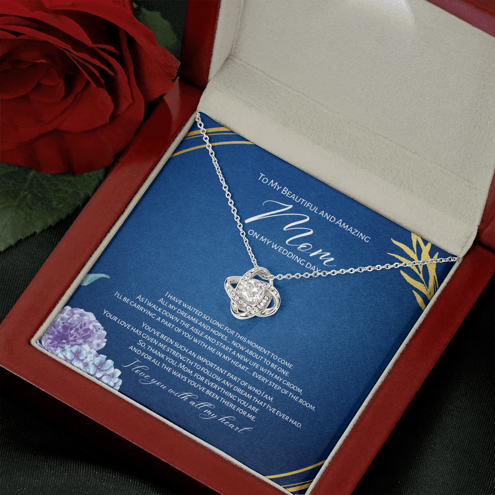About To Be One - Mother Of The Bride Gift From Daughter - Love Knot Necklace - Navy