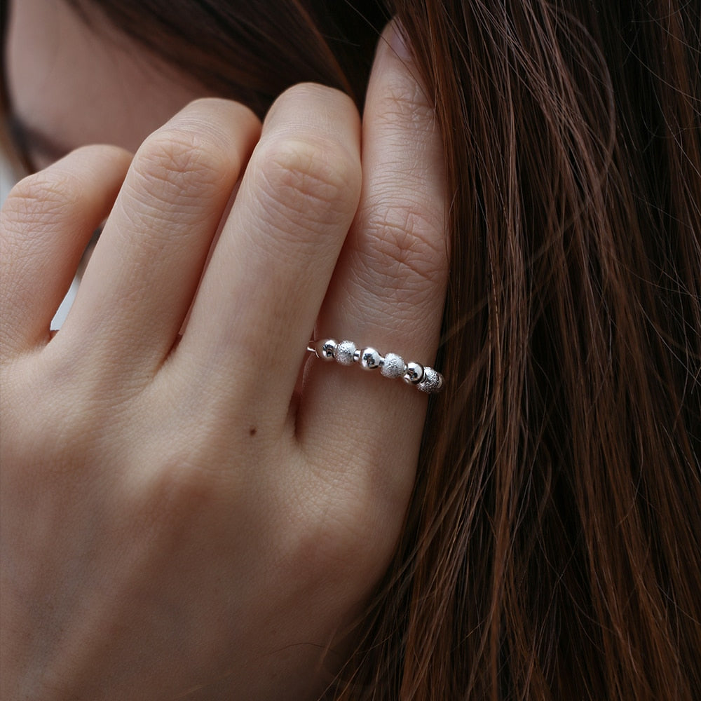 Introducing our Anxiety Bead Ring - the perfect accessory for those moments when anxiety strikes and you need something to keep your hands busy. This cute and fashionable ring is also a discreet fidget device that can help distract you from more harmful behaviors, like nail biting or skin picking.