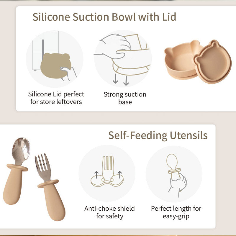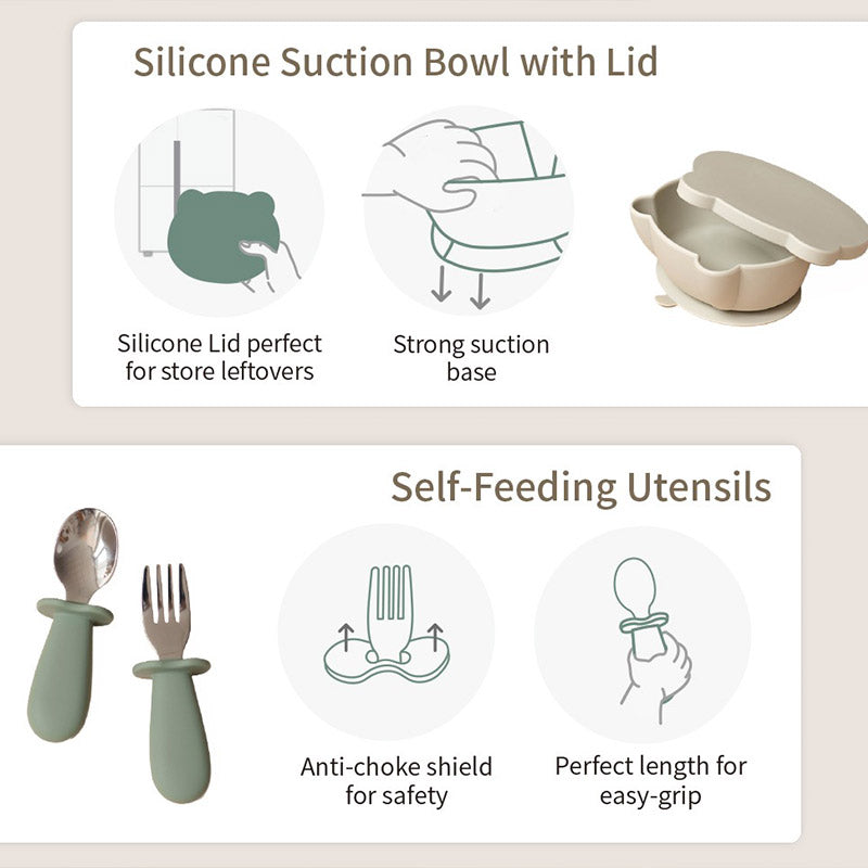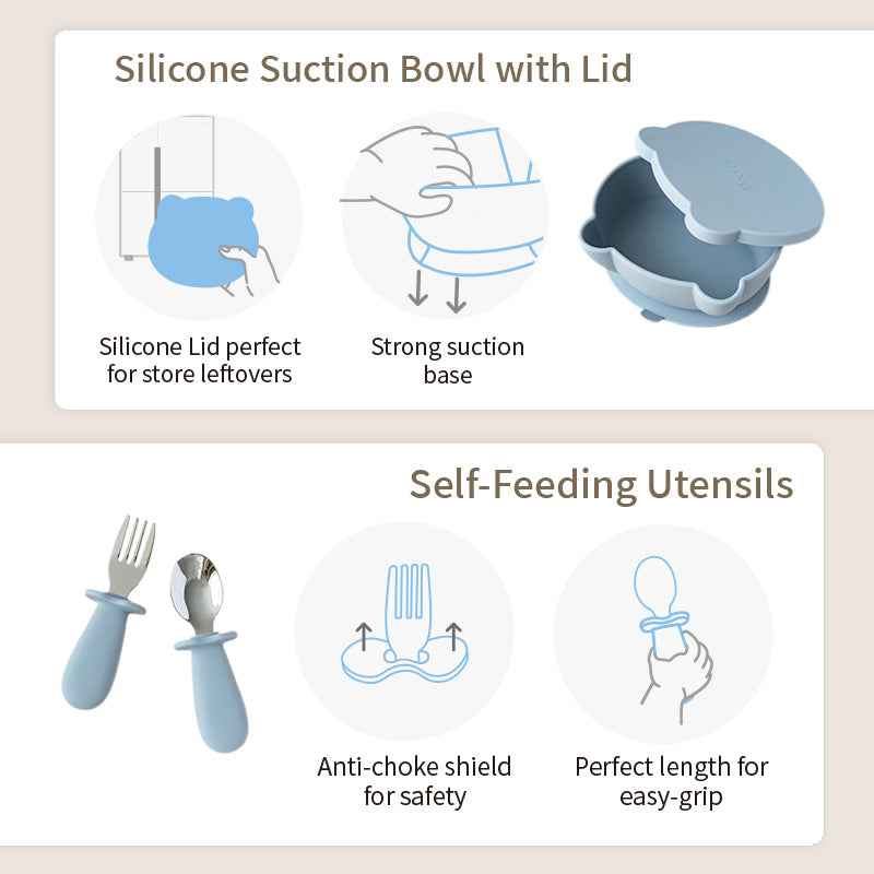 What's included: 1 Baby Bowl and Lid Set, 1 Infant Spoon and Fork Set