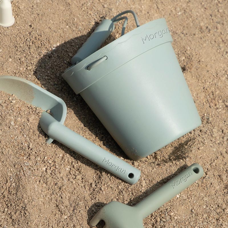 Personalize our beach toy set with your little one's name on the bucket, rake, and shovel to make it even more special!