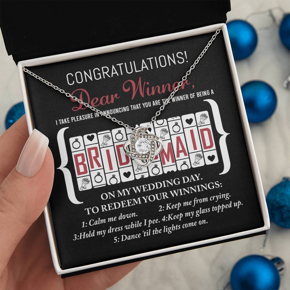 Bridesmaid - The Winner Of - Love Knot Necklace