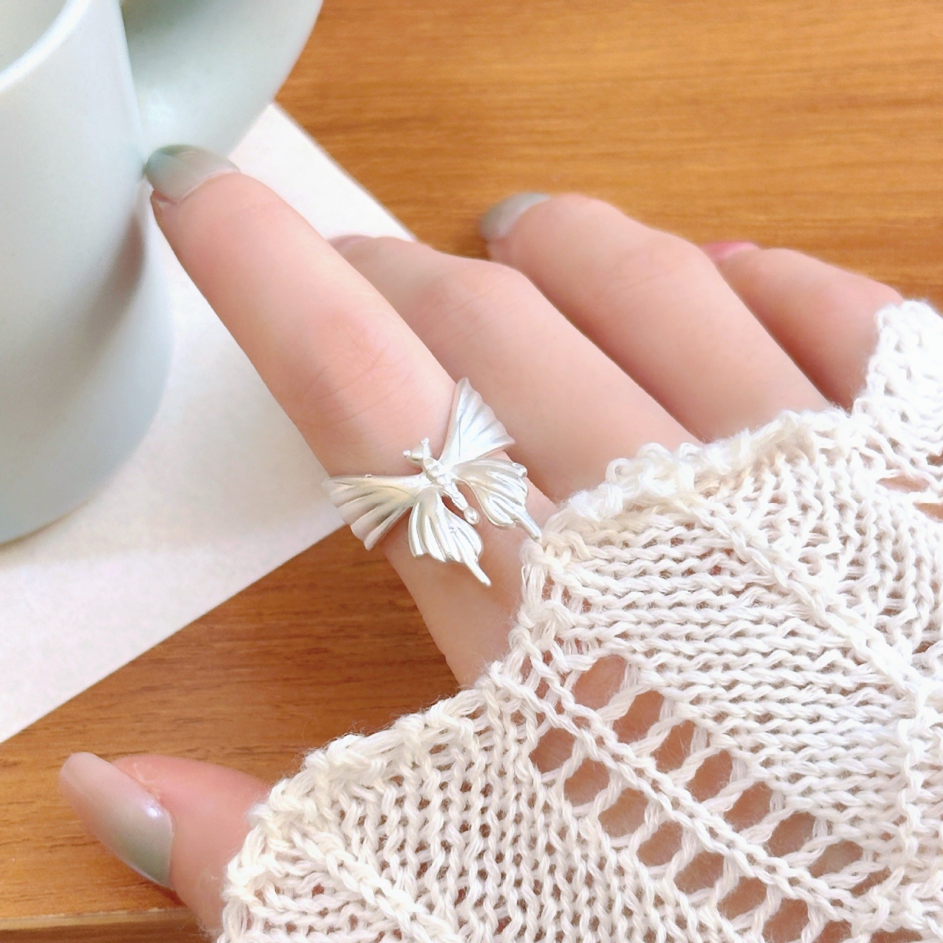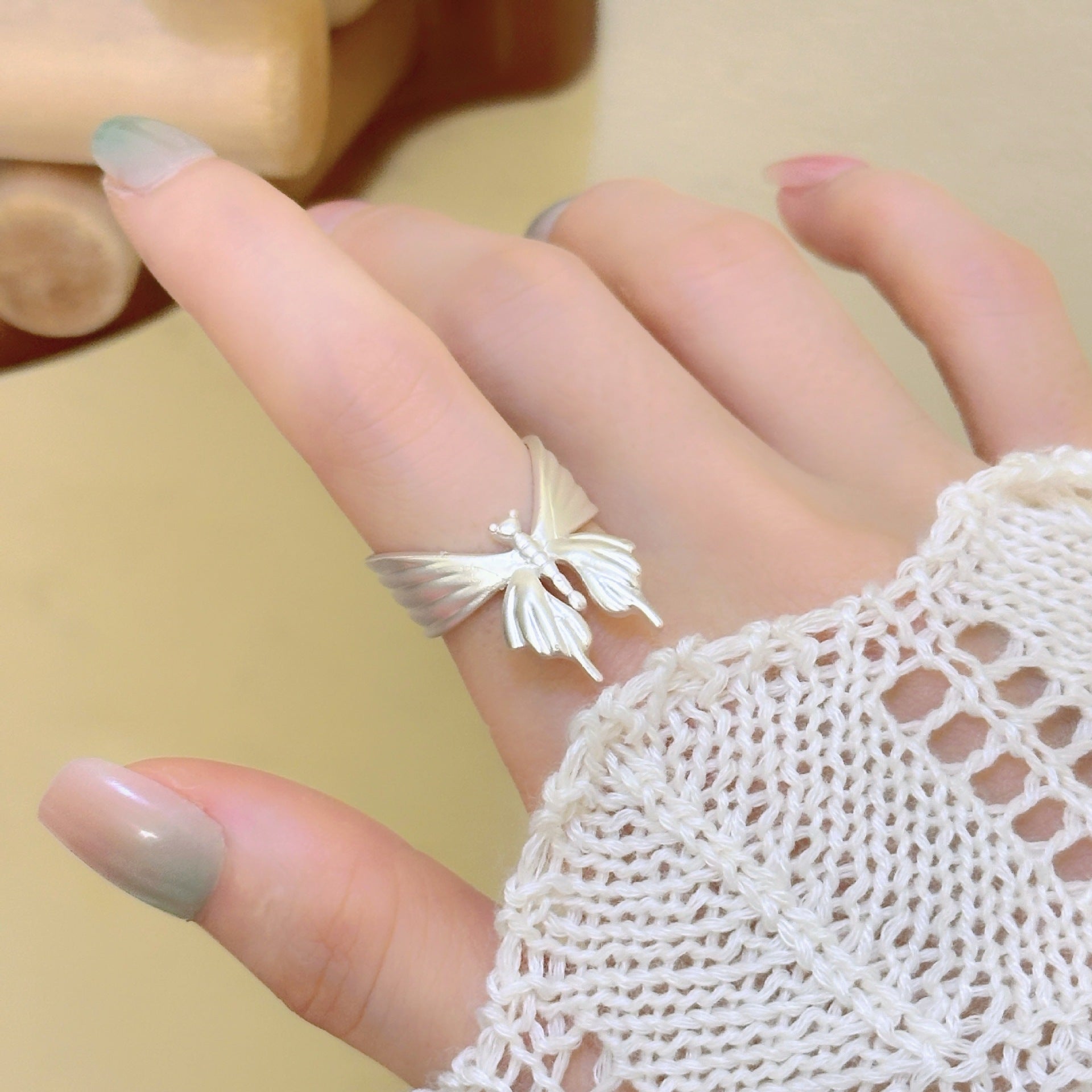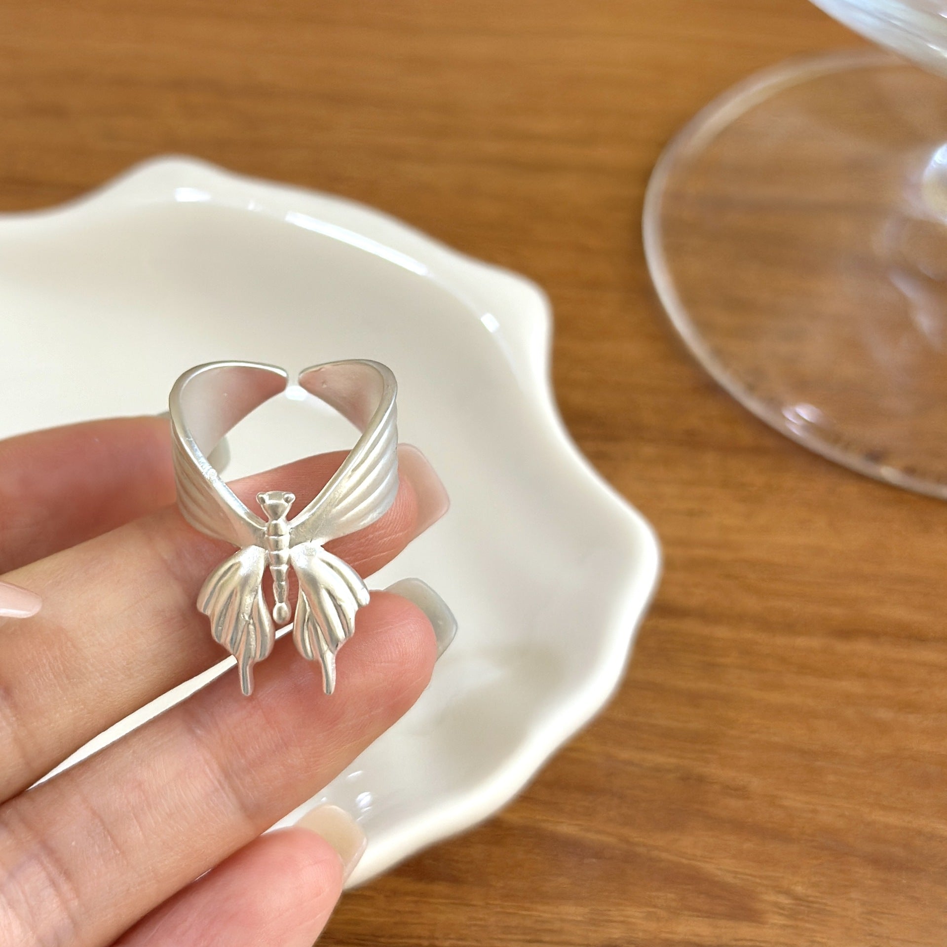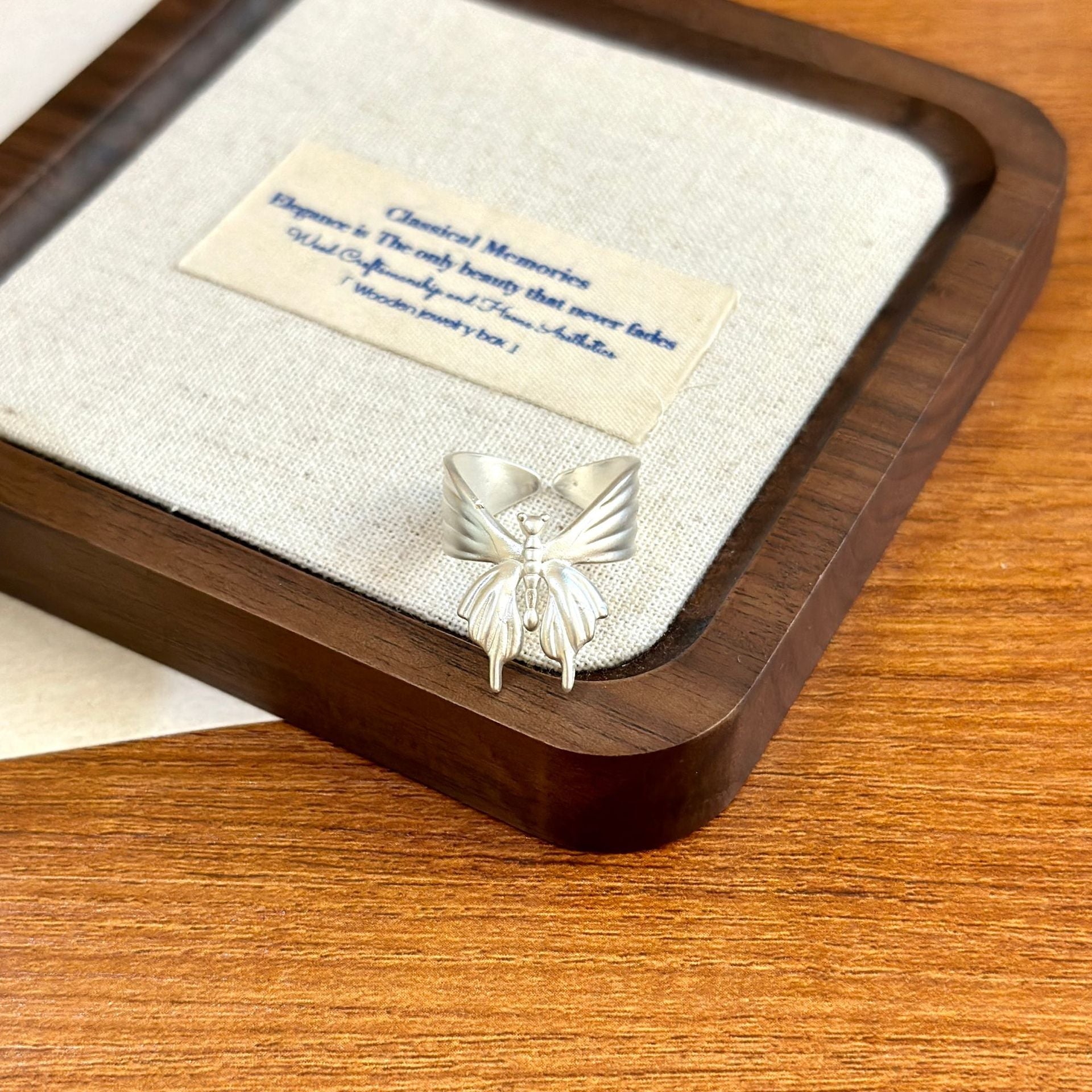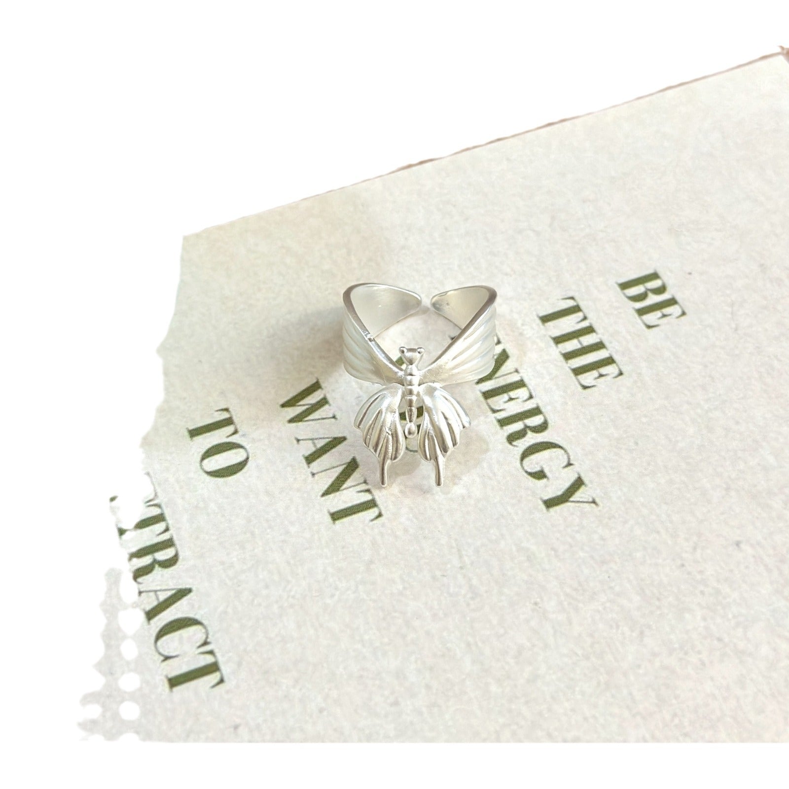 The brushed butterfly ring is a piece of jewelry that combines exquisite craftsmanship with natural elements.