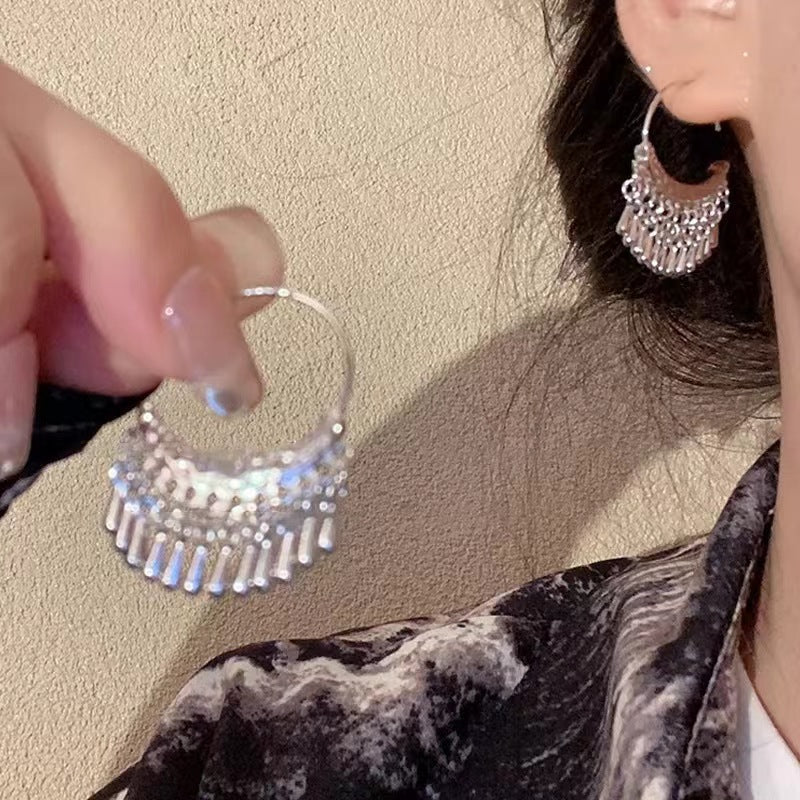The circle waterdrop tassel earrings are exquisite pieces of jewelry that combine the design elements of circles, teardrops, and tassels.
