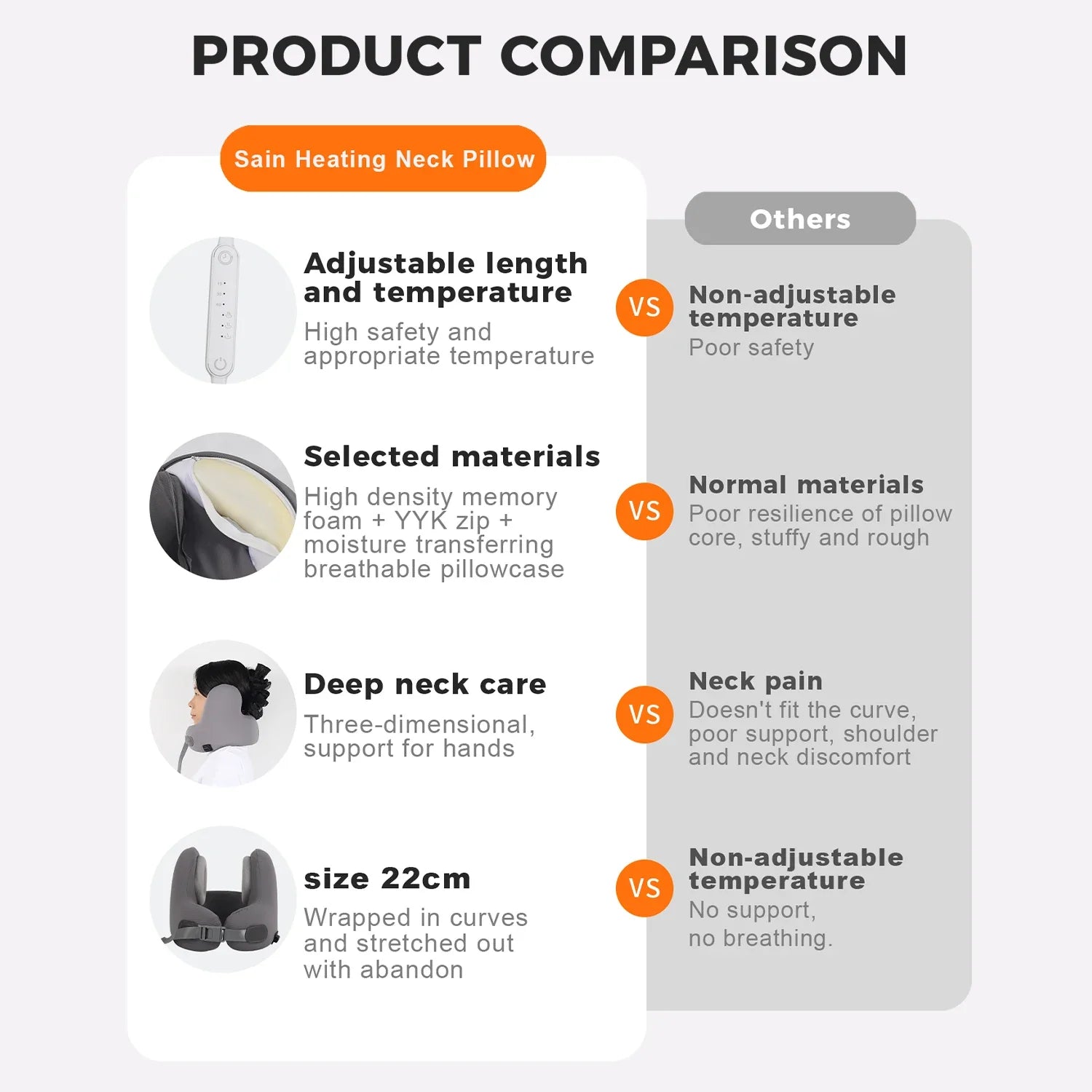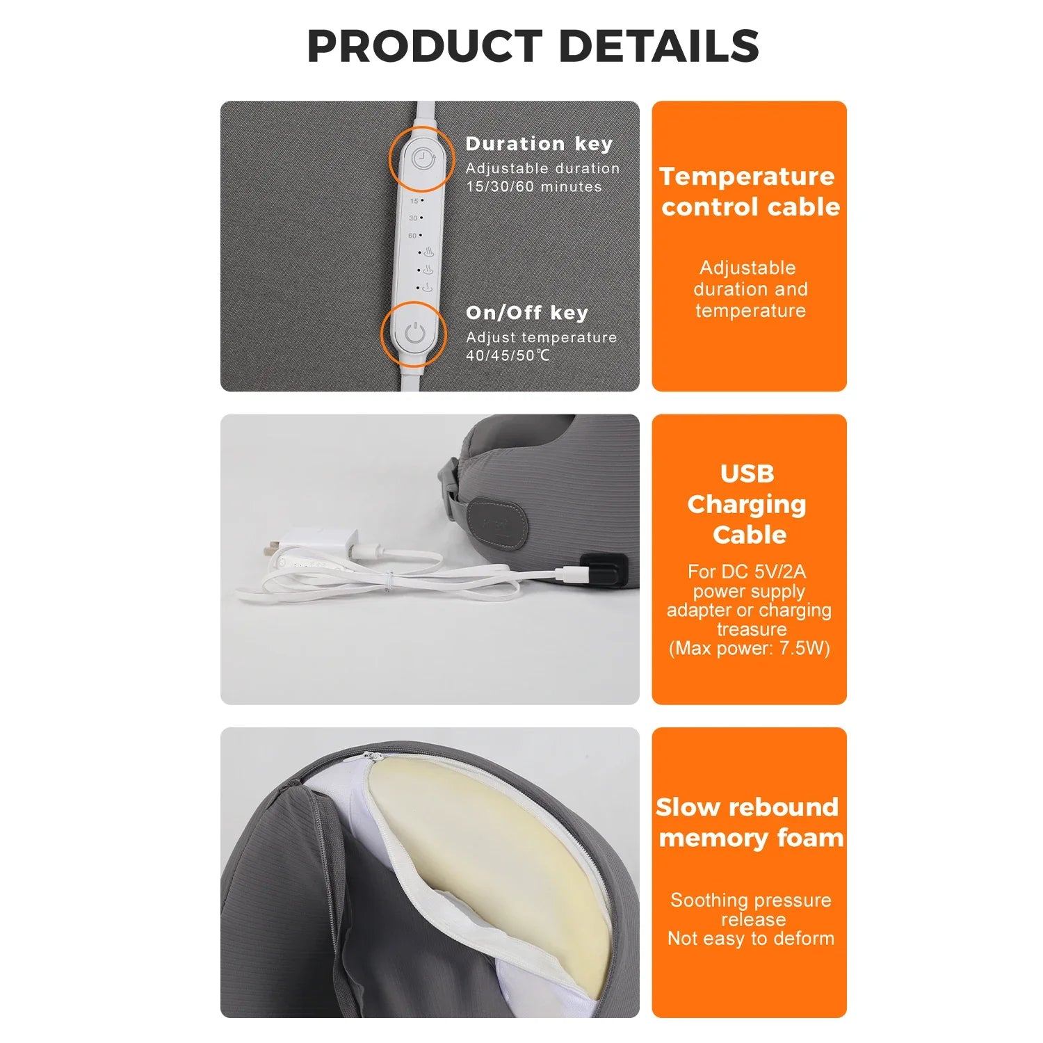 Heated Memory Foam Neck Pillow – Electric U-Shaped Travel Cushion with Massage for Airplane & Camping