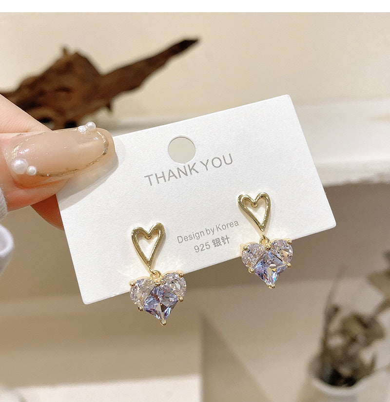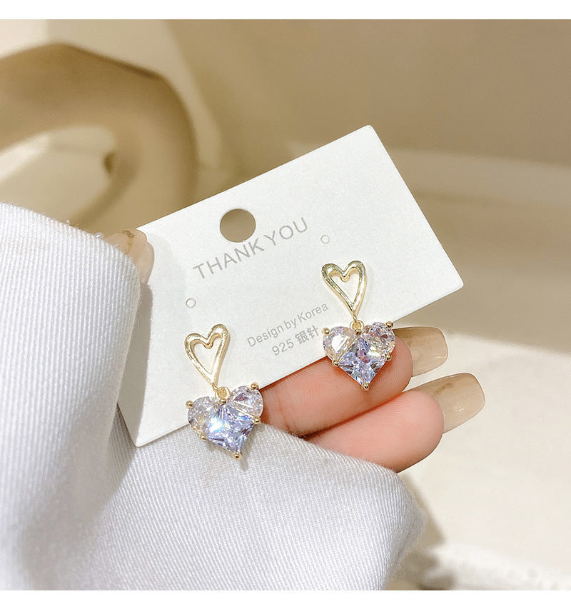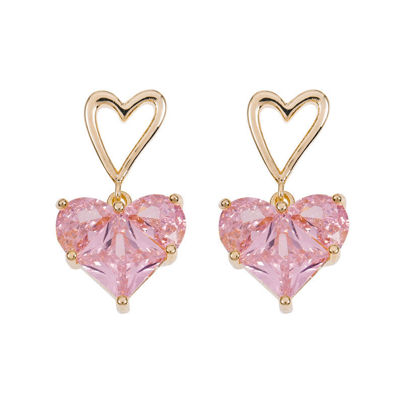 • Double-layer Hearts: The earrings feature two overlapping heart shapes. The upper layer is a smaller metal heart, while the lower layer is a pink zircon heart, creating a distinct layered effect.
