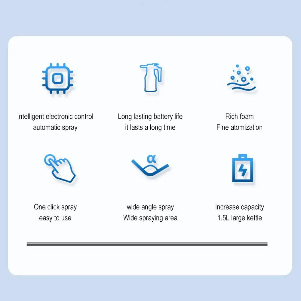 Revolutionize your cleaning routine with this USB Rechargeable 1.5L Electric Foam Sprayer – designed for effortless, high-efficiency cleaning. Featuring a durable 2600mAh lithium battery, this foam watering can delivers 20–30 minutes of powerful spray time on a full charge. Whether you're detailing your car, washing walls, or refreshing your garden, this multi-purpose foam sprayer is your ultimate cleaning companion.
