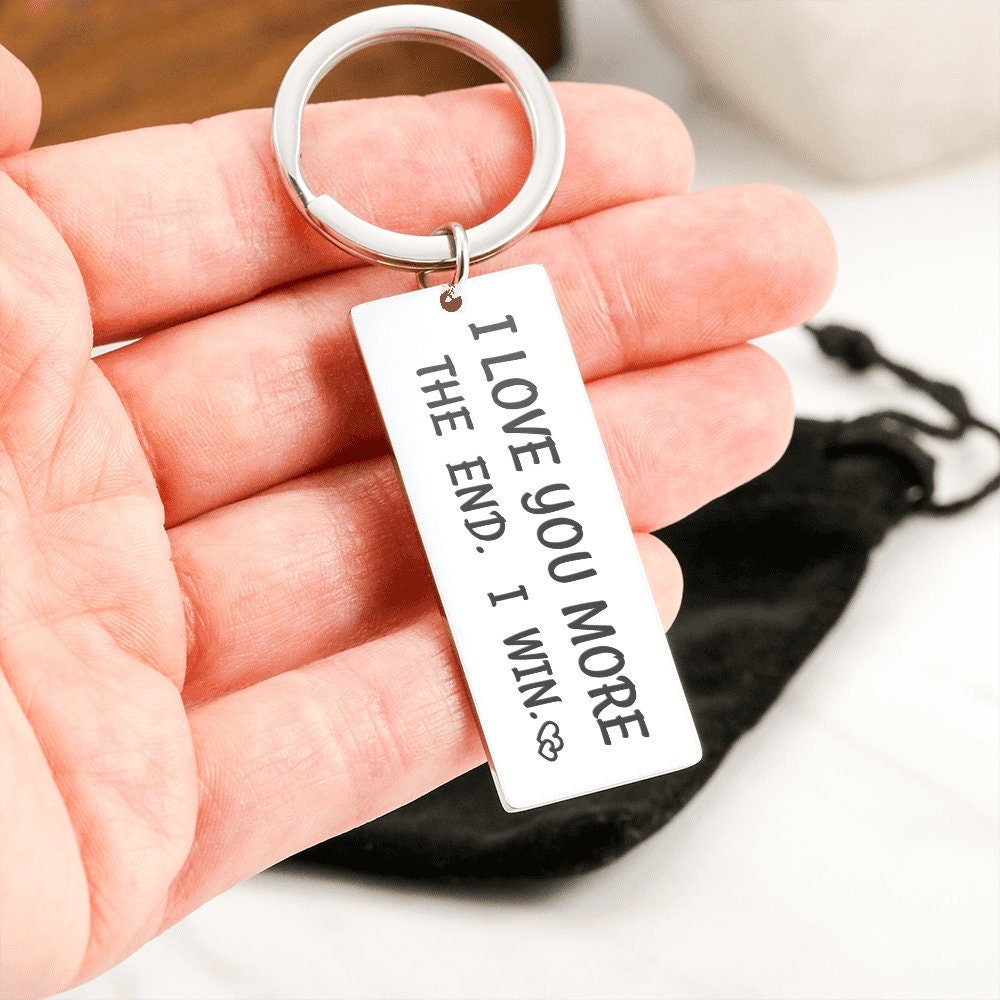 Gift For Him. I Love You More The End. I Win. Funny Birthday Keychain.