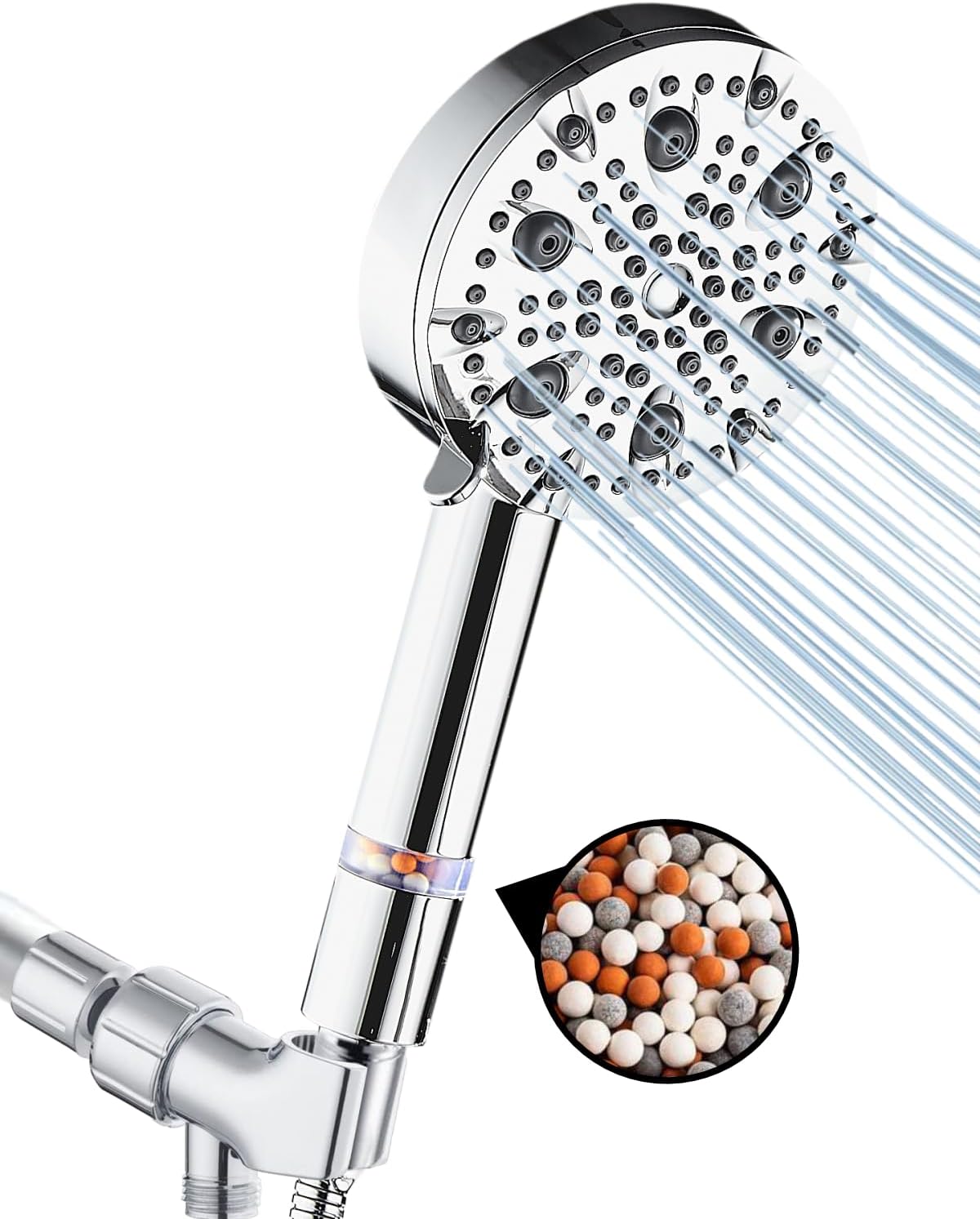 ✔️ With Ionic Mineral Stones to filter chlorine, limescale, dirt, and other impurities
