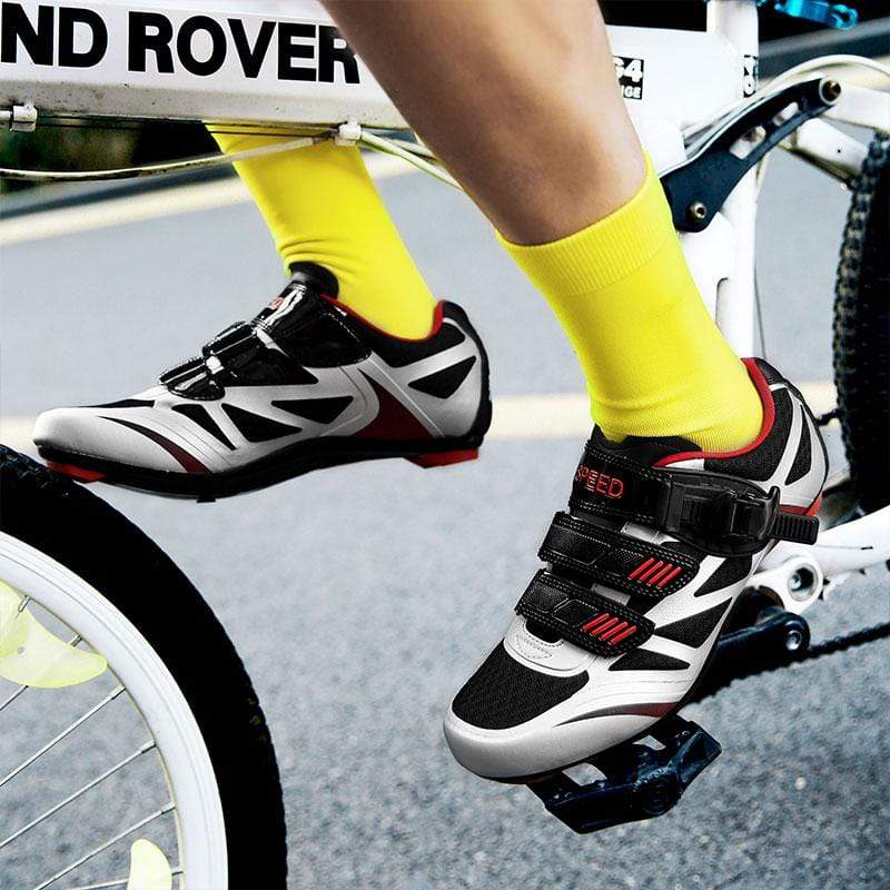 • Double lock type - The Flat Cleat Shoes feature a double closure type so you can be certain that it has a secure fit with two velcro straps and a lock strap.