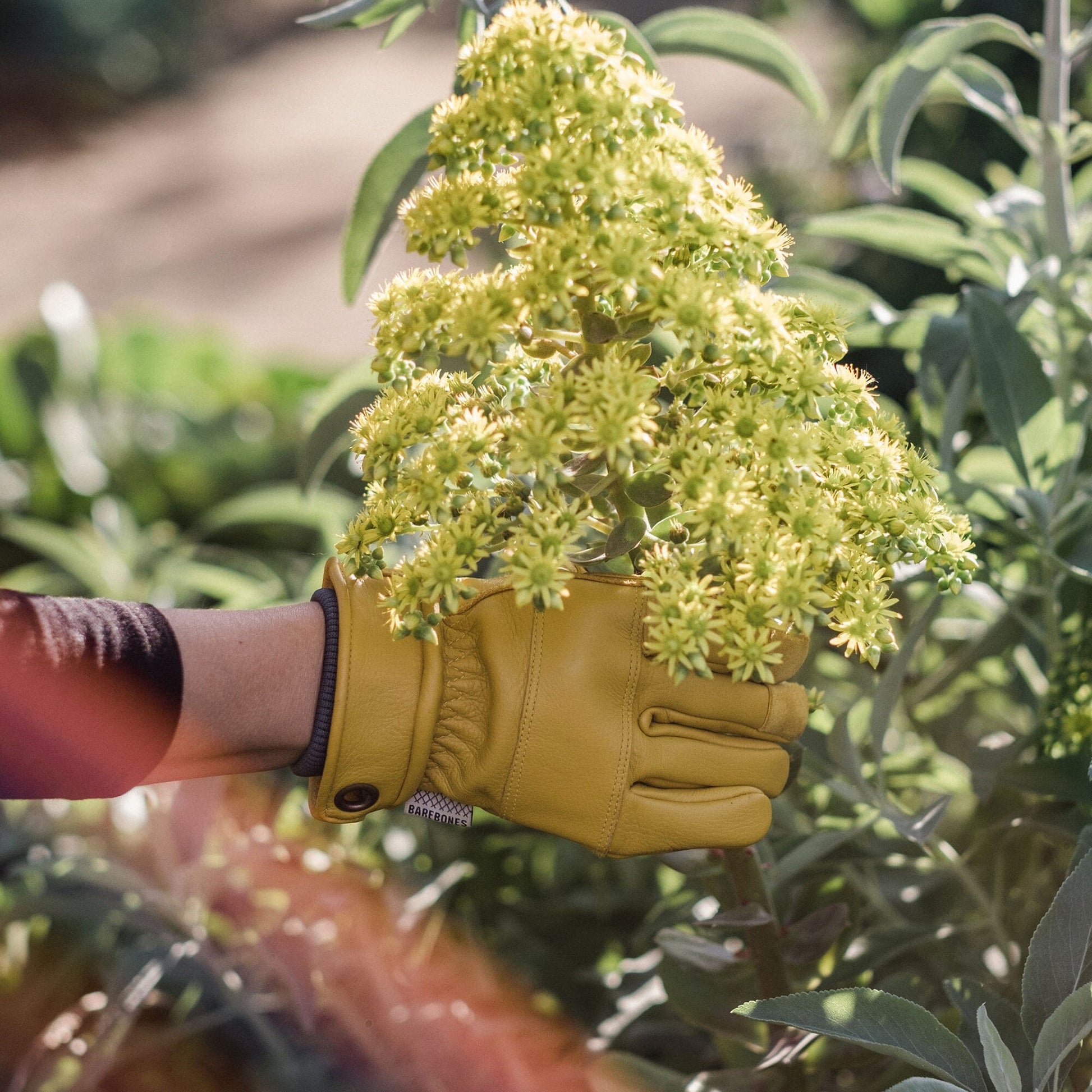 A step up from our Classic Work Glove, the Kunar Glove is an all-purpose glove for the garden, the workshop, and everyday wear in cold temps. Made from 100% premium cowhide leather, this work glove features an elastic cotton cuff for extra insulation and protection (no more woodchips sneaking into your glove while you work). Suede reinforcement panels over the middle and index fingertips supply abrasion resistance and support. Included copper grommet is perfect for hanging and easy storage.