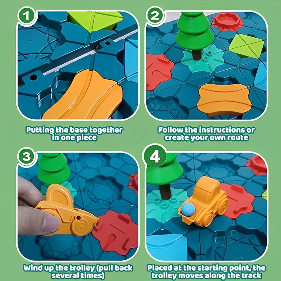 Watch your child's creativity soar as they construct routes using various pieces, linking paths from start to finish. Wind up the car and marvel as it smoothly transports the marble ball to the end. This engaging puzzle is perfect for enhancing logical thinking, focus, observation, color recognition, and understanding of cause and effect. Ideal for kids aged 3-7!