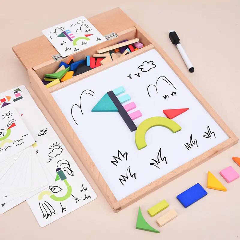 ✏️ The magnetic Magnetic Puzzle Board features colorful blocks that children can arrange and create their own designs. The writing and drawing board allows kids to practice their writing skills and unleash their creativity.