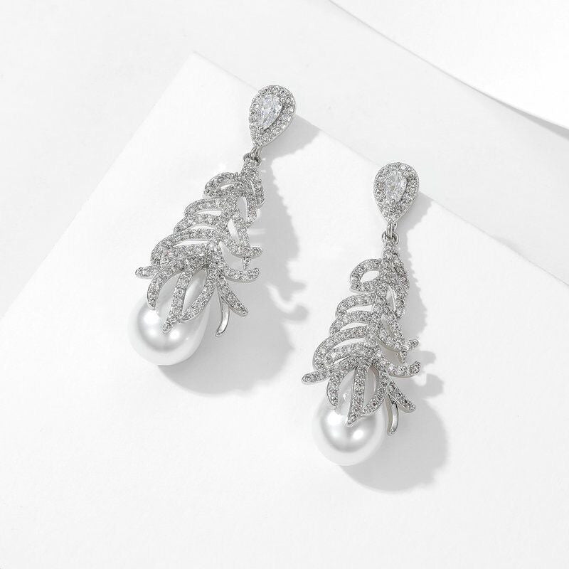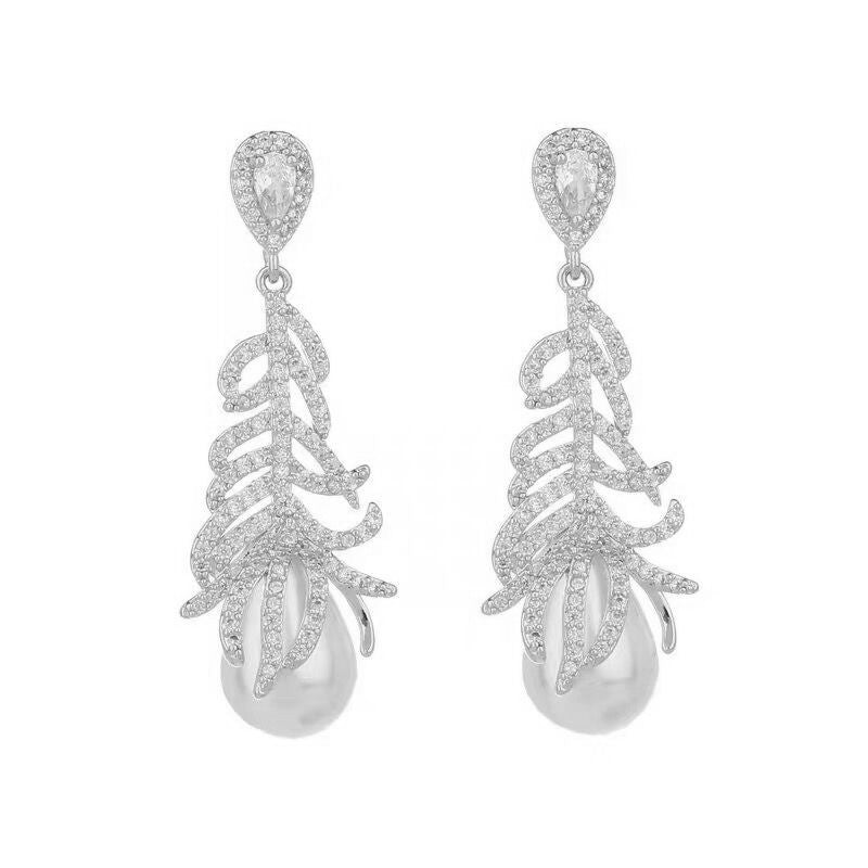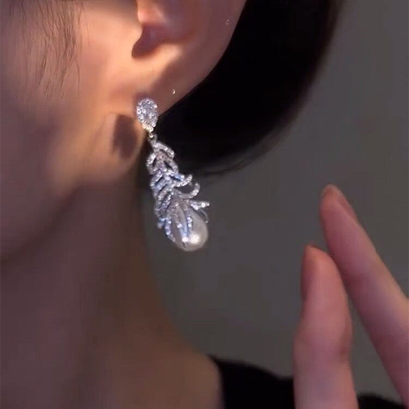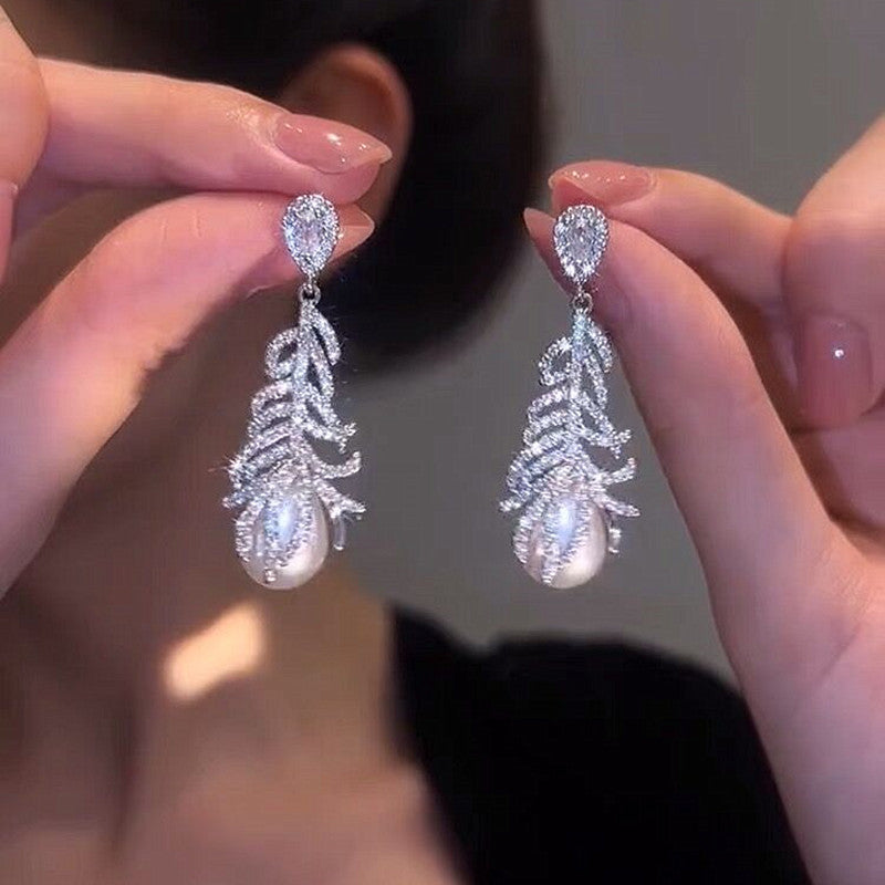 These micro-set zirconia feather pearl earrings, with its delicate design and exquisite craftsmanship, perfectly display the beauty of elegance and spirit. The overall weight of the earrings is 8.4 grams, which is comfortable and not easy to wear.