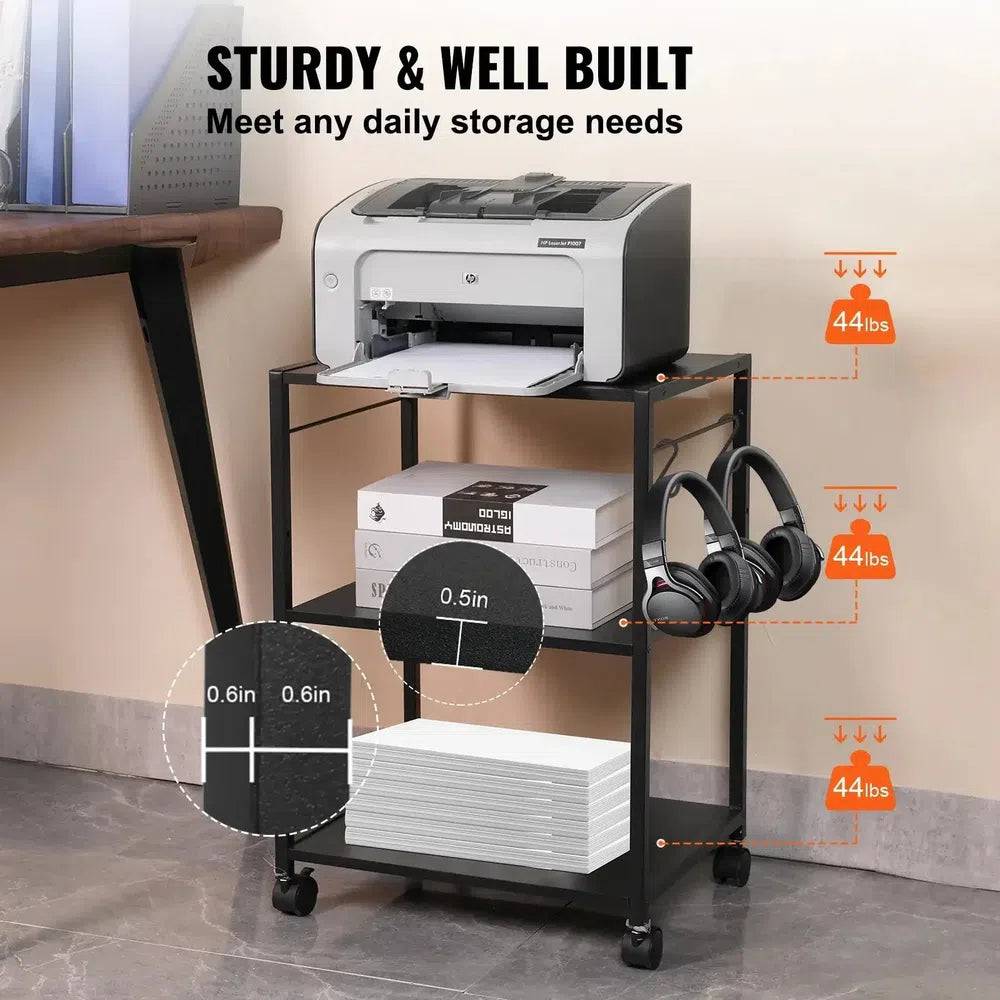 Features three spacious shelves, ideal for storing printers, office supplies, or other essentials.