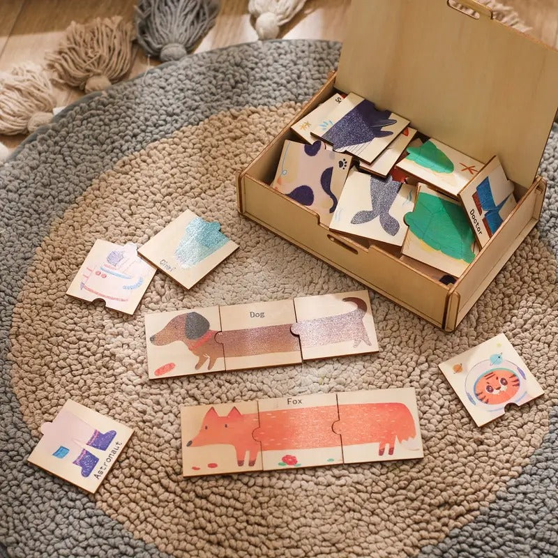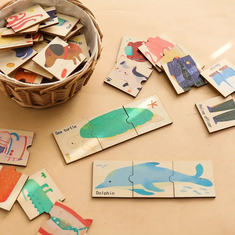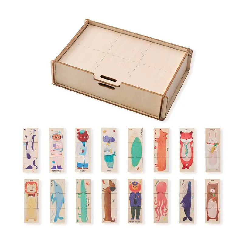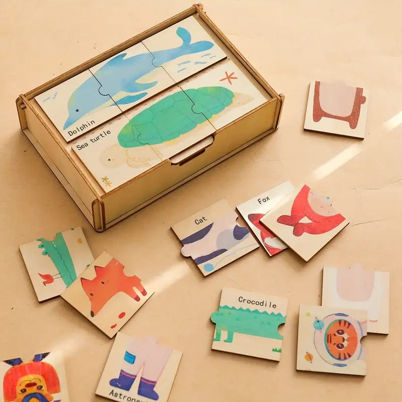 Introduce your little one to the joy of puzzle-solving with the Montessori Animal Shape Puzzle! This delightful puzzle set features beautifully illustrated animal and character pieces that challenge and engage young minds. Each piece is uniquely shaped to fit only with its match, helping children develop problem-solving skills, hand-eye coordination, and cognitive abilities while having fun.