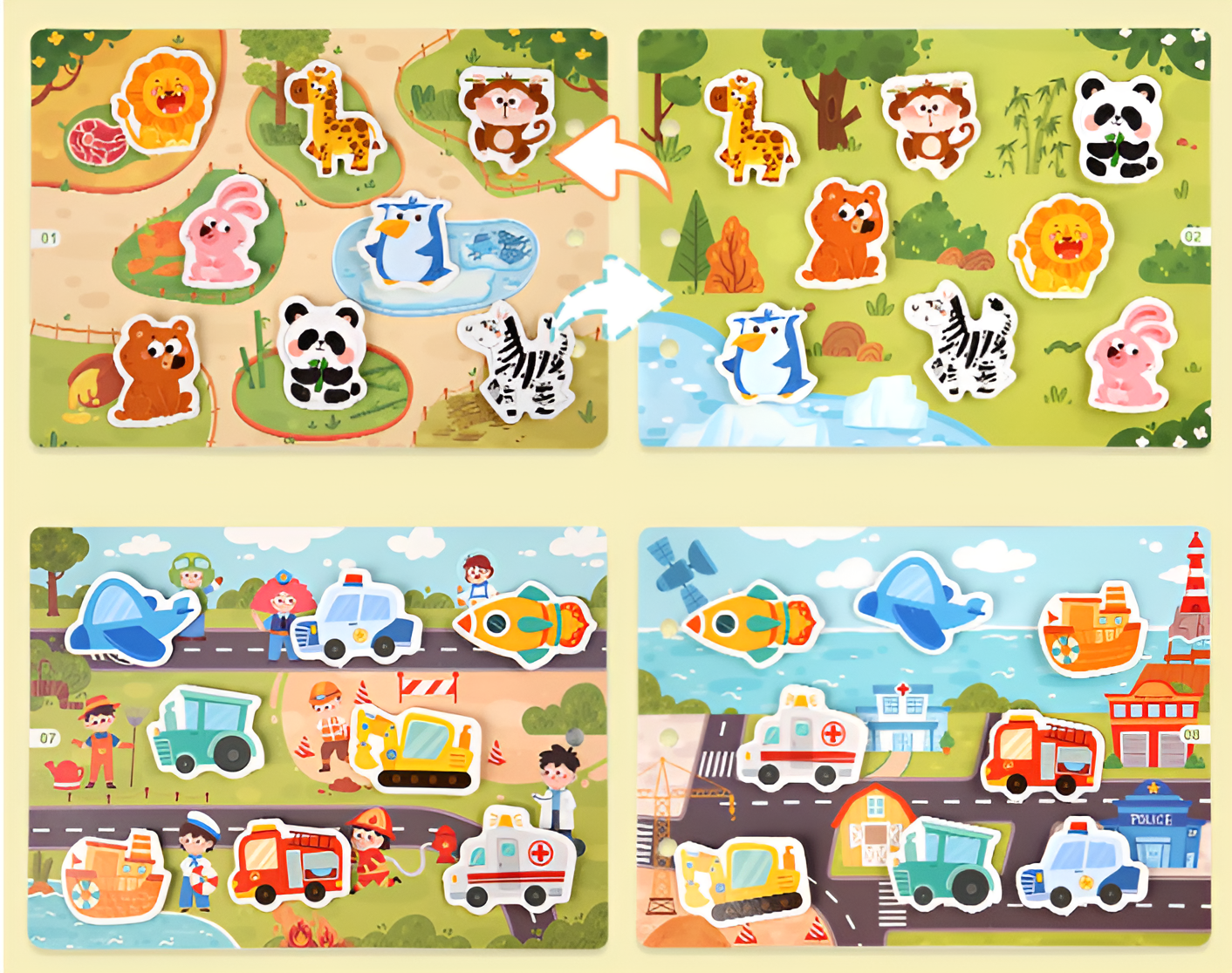 Our Busy Sticker Book is more than just a fun activity—it's a powerful educational tool designed to boost essential skills. Each page is filled with engaging activities that develop fine motor skills, color recognition, and problem-solving abilities. With interactive stickers, children can match, arrange, and create their own stories, making learning an exciting adventure! 🌈🔍