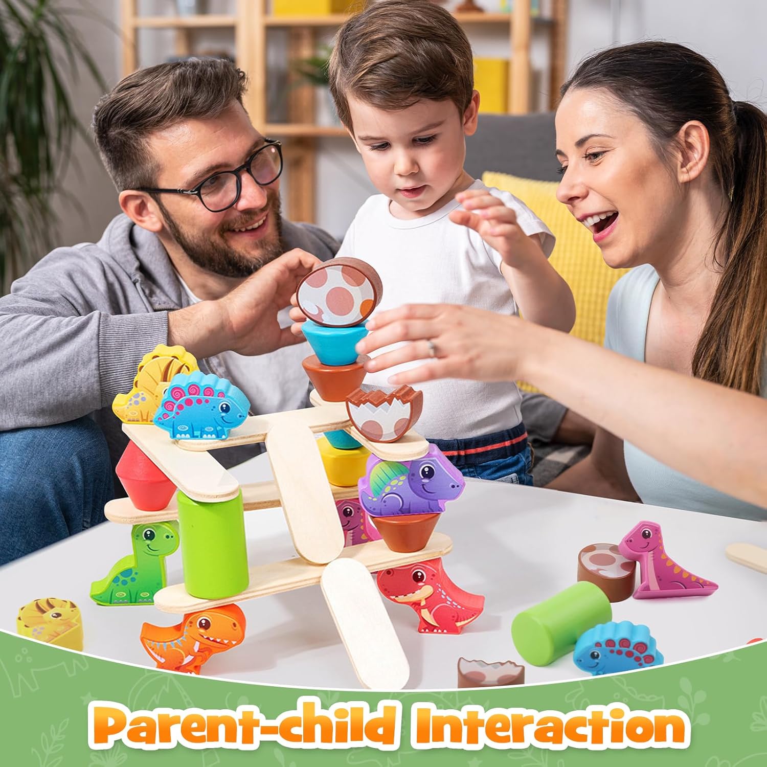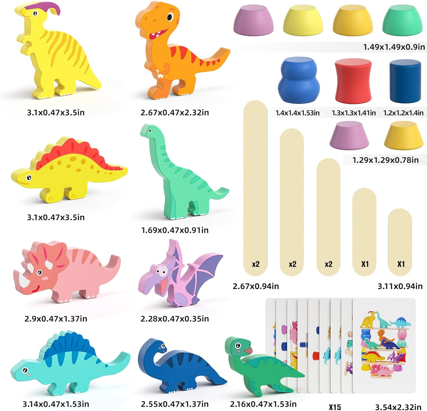 • Matching Base: A sturdy wooden base with slots for each dinosaur encourages shape recognition and fine motor development.