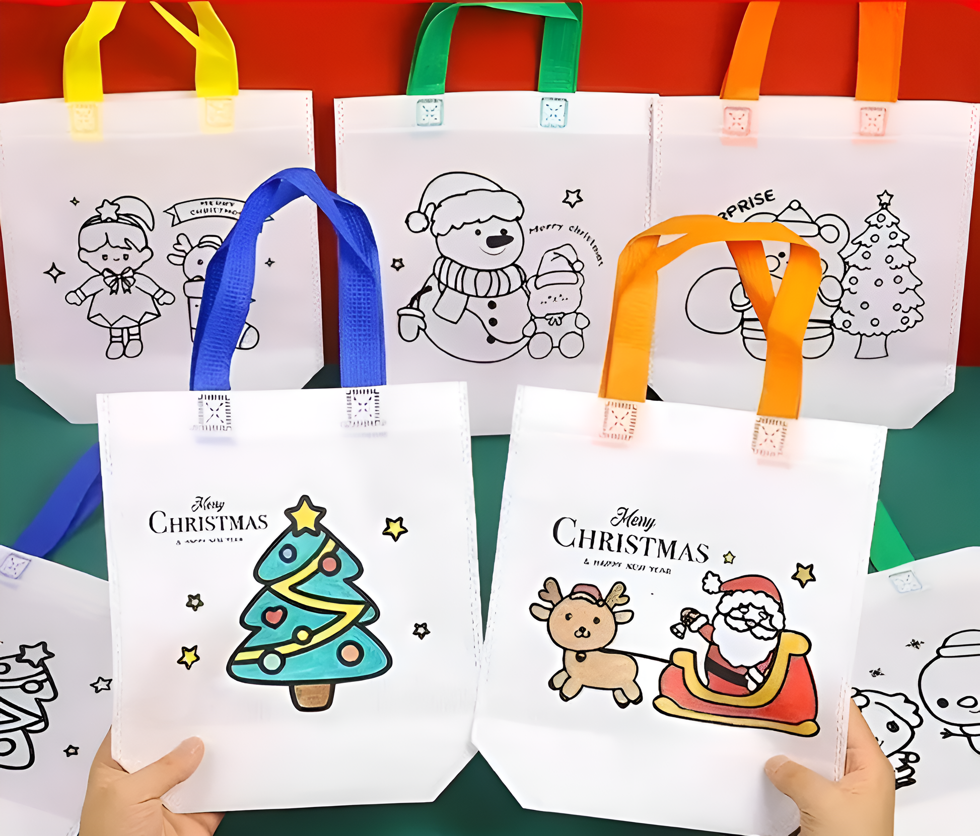 Each bag is crafted from eco-friendly 🌍, non-woven material that’s not only durable but also safe and easy to color, ensuring long-lasting fun. With vibrant handles available in blue, pink, yellow, red, and green 🌈, these bags aren't just functional—they add a festive flair to any holiday activity. Make your holidays special and memorable with the Montessori DIY Christmas Bag—the perfect blend of creativity and festive cheer!