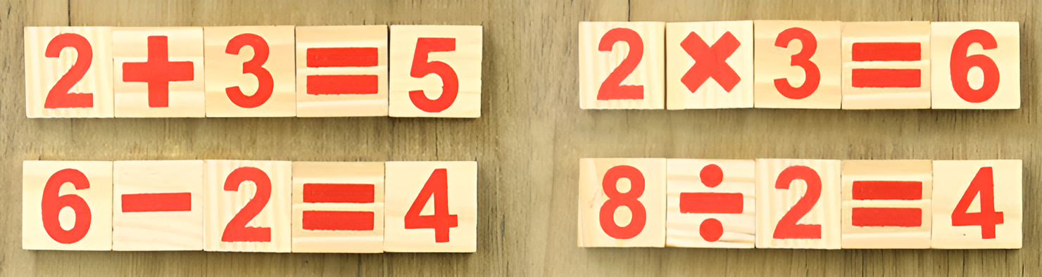 • Package Includes: 1 wooden box 📦, 24 wooden plates (numbers and operation symbols), and 48 counting sticks in 4 vibrant colors 🌈.