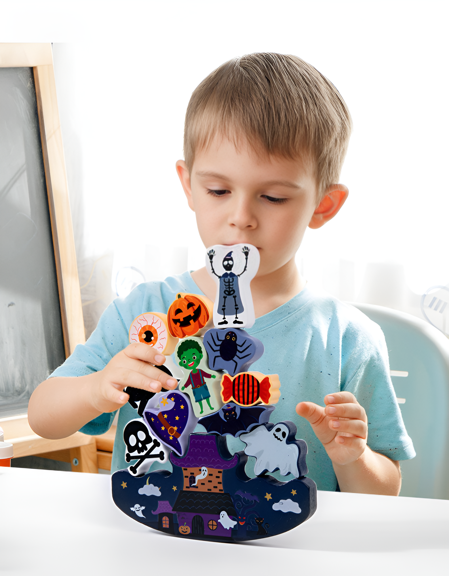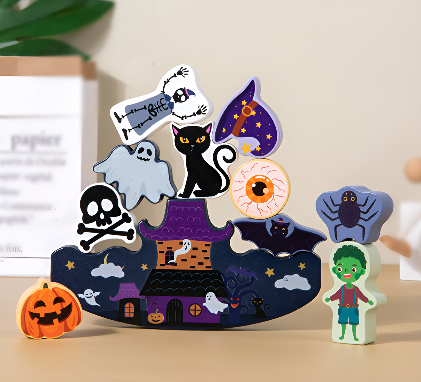 "I recently purchased the Halloween stacking toys for my kids and they loved them! The set includes cute and spooky characters that are perfect for the holiday season. The toys are well-made and durable, which is great for younger kids. They had a blast stacking and unstacking the pieces, and it also helped improve their hand-eye coordination. " — Mommy Julie
