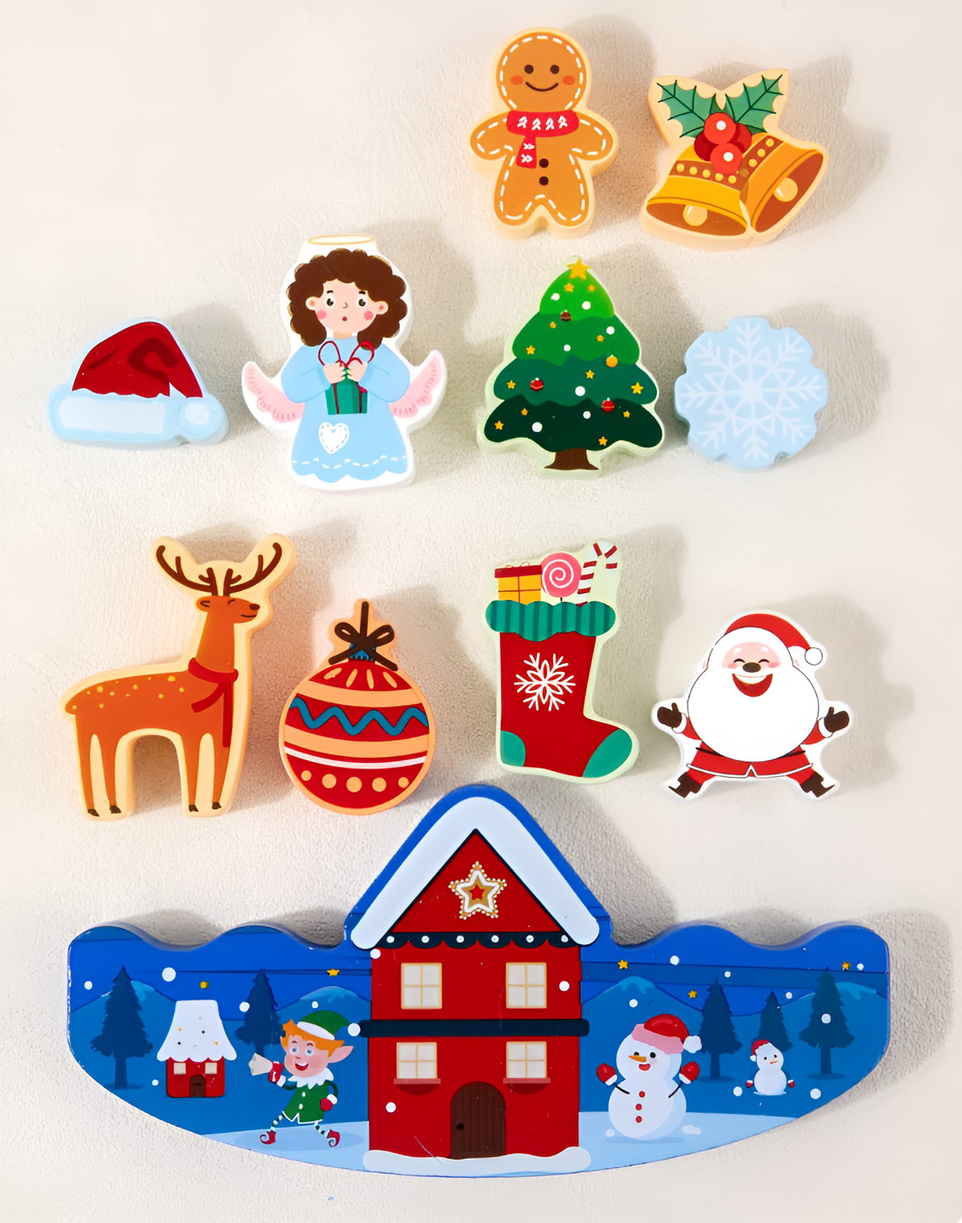 Celebrate the festive season with the Montessori Holiday Stacking Game! 🌟 Stack 11 holiday-themed pieces, including a gingerbread man 🍪, Santa Claus 🎅, reindeer 🦌, Christmas bells 🔔, a snowflake ❄️, and more, all on a charming Christmas house base 🏠. Perfectly designed for little hands to build, balance, and create their own winter wonderland! 🎄