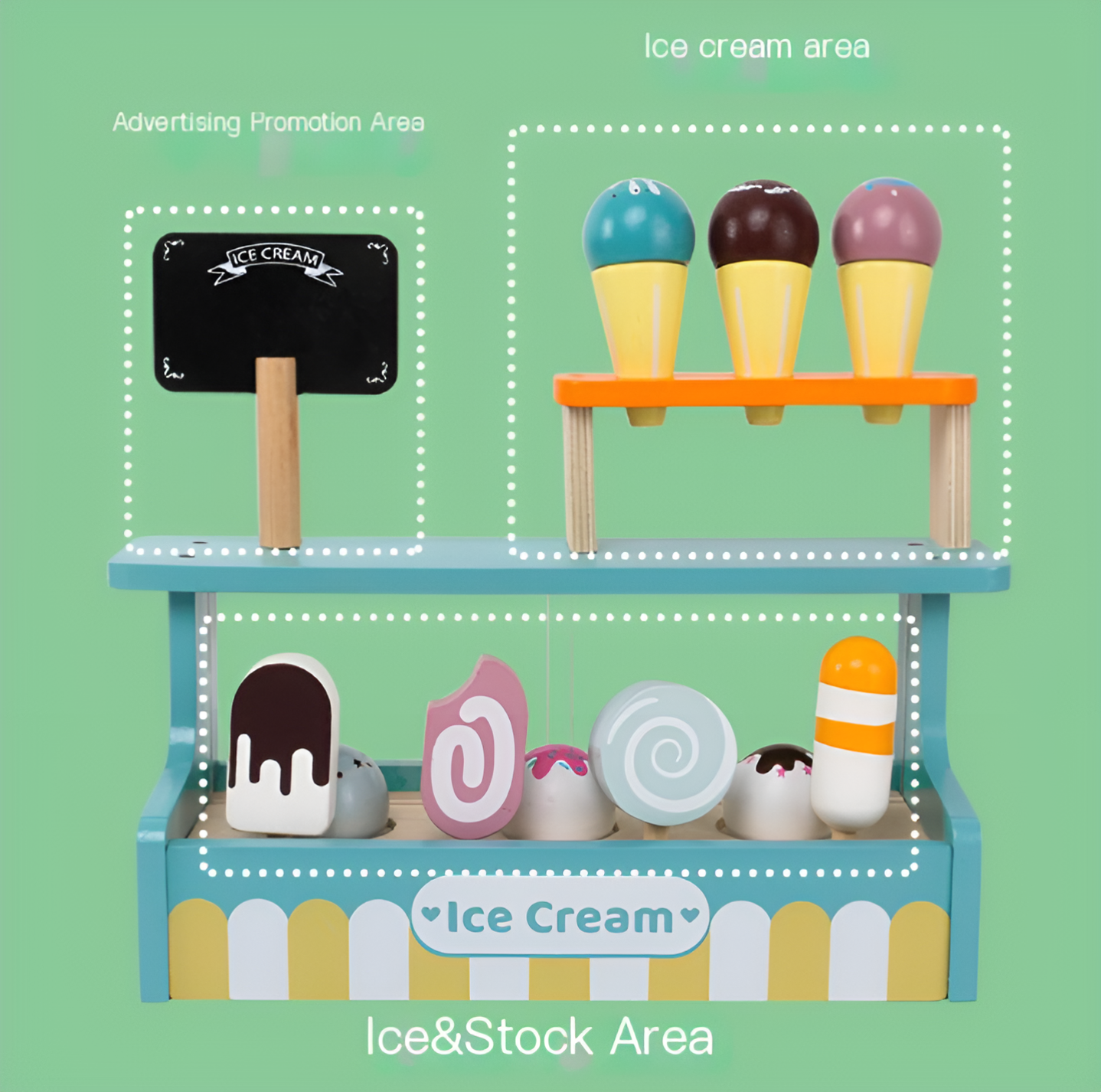 Made from chemical-free, sustainable wood and non-toxic paints, the Montessori Ice Cream Shop is built to last through countless hours of play. Sturdy, safe, and environmentally friendly—this is a toy you can feel good about. 🌱🛠️
