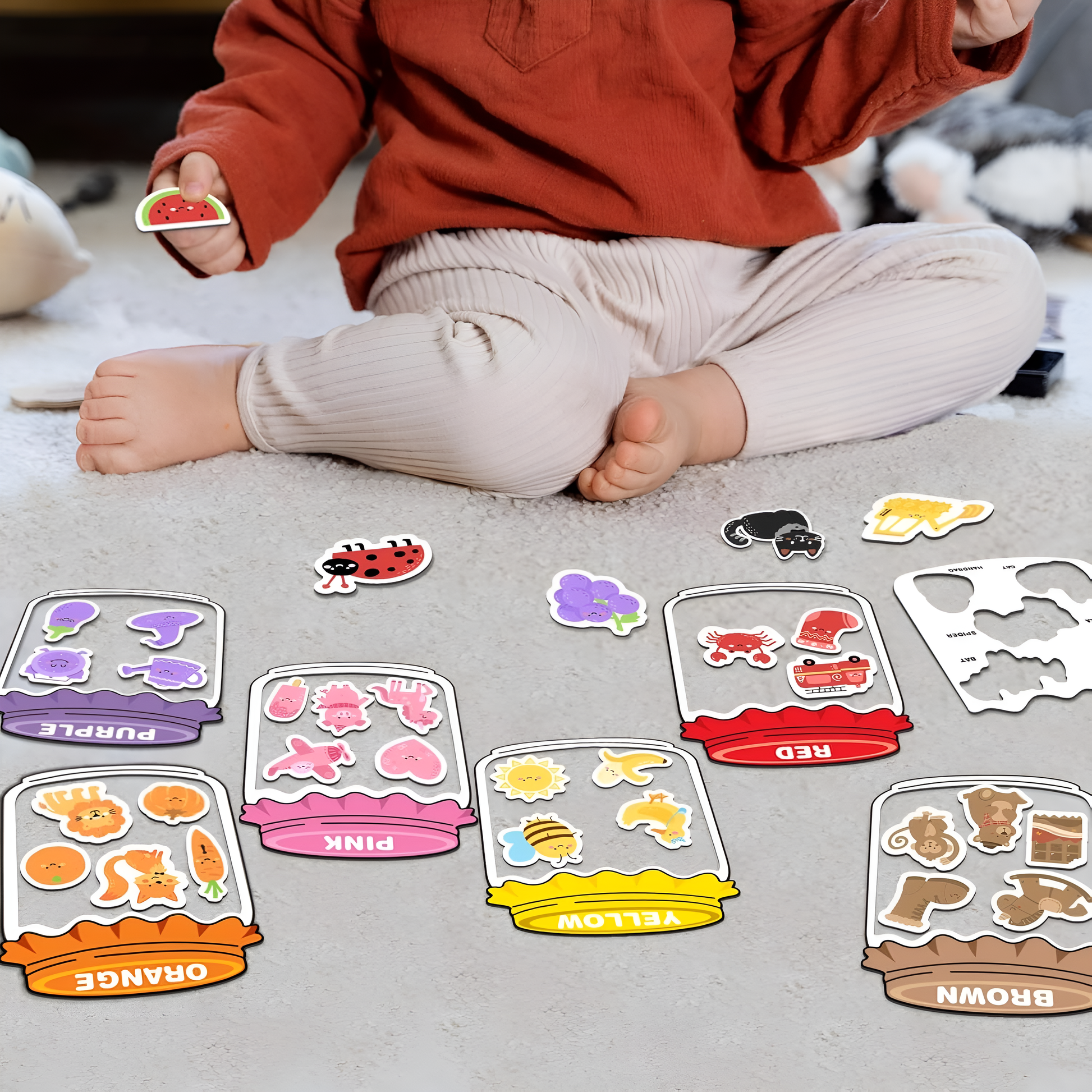 Transform learning into play with this exciting color matching game! 🎉 Kids will quickly learn to recognize colors and shapes while developing sensory skills through hands-on manipulatives. Each of the 44 sorting magnets has an added layer of EVA foam for easy handling, making them ideal for toddlers! 🙌