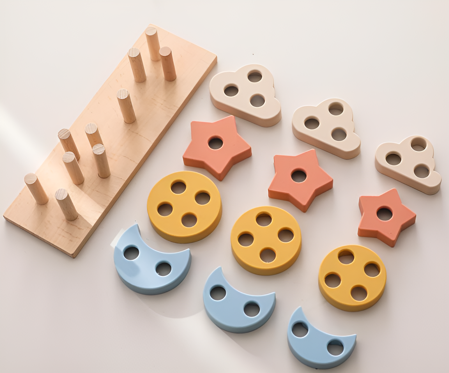 🌈 Multi-Skill Development: From stacking clouds and stars to sorting animal shapes, the Montessori Silicone Stacking Toy encourages your child to engage their core muscles 💪 and develop coordination. It’s a fun way for toddlers to practice balance and body control while exploring the world of shapes and colors! 🌍🌈