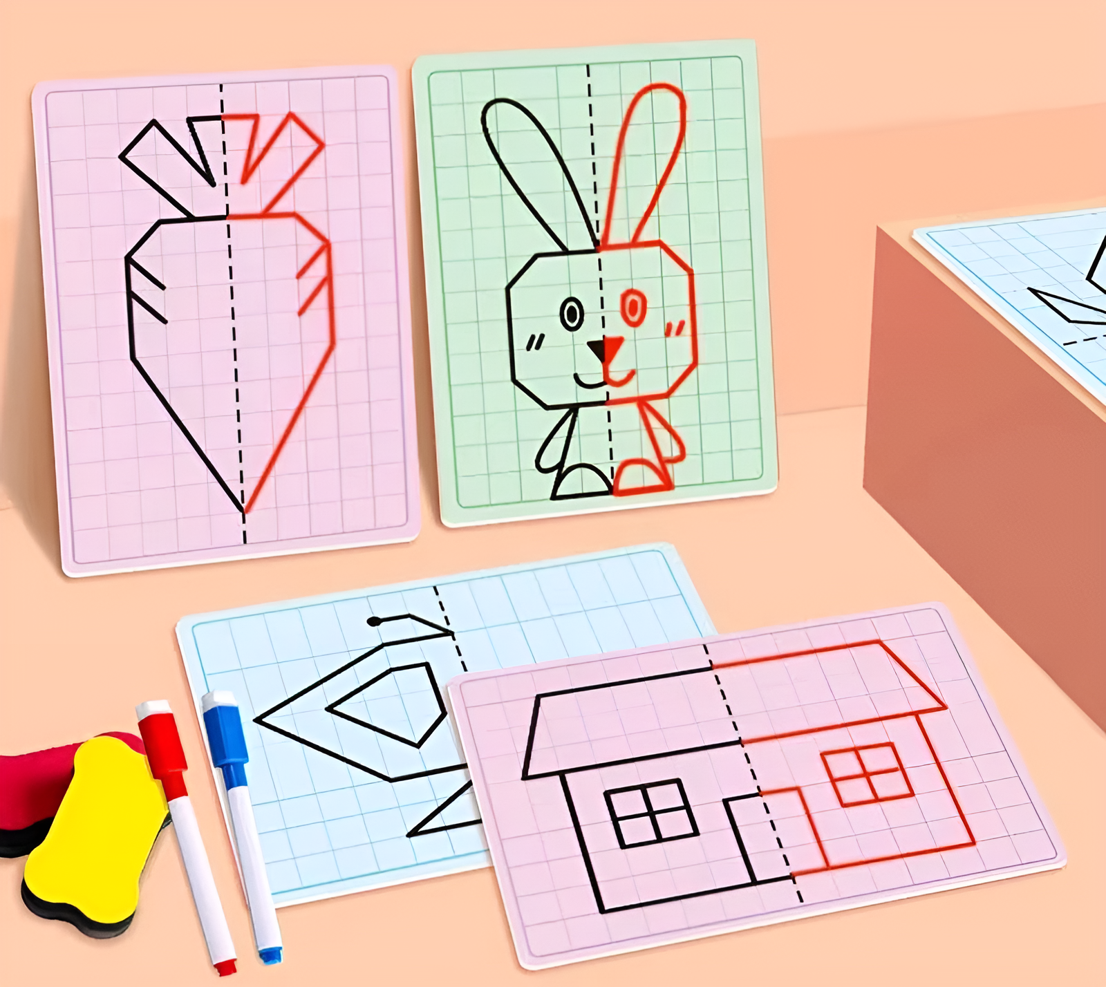 ๐Ÿงฉโœจ Let your child's imagination soar with the Montessori Symmetrical Drawing Cards! This fun and educational set features 20 unique patterns ๐Ÿƒ, each with half of a captivating image. Complete with an erasable pen ๐Ÿ–Š๏ธ and an eraser ๐Ÿงผ, itโ€™s the perfect tool for creative play and learning!
