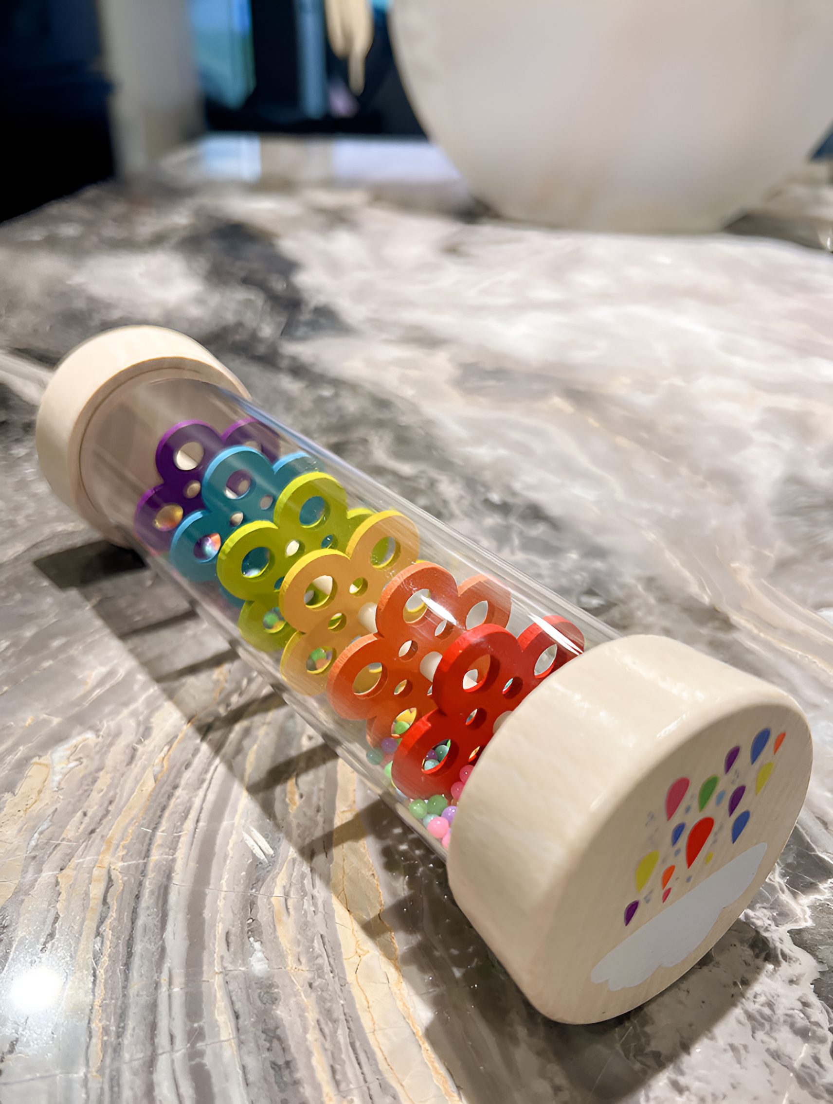 Turn, shake, or roll this rainmaker for a clear and calming rain-like sound that soothes your little one.
