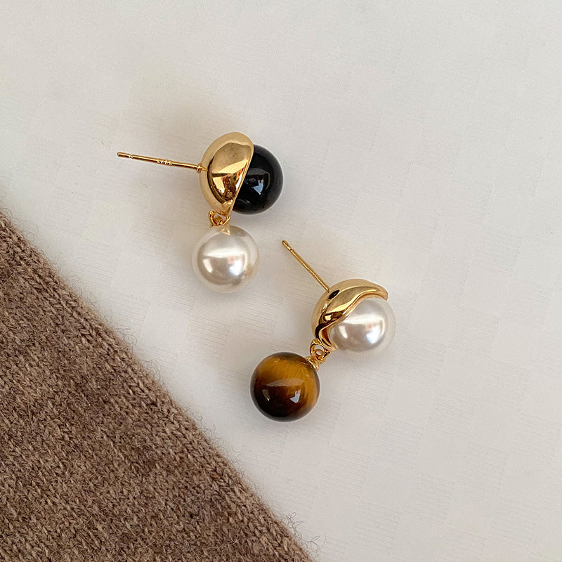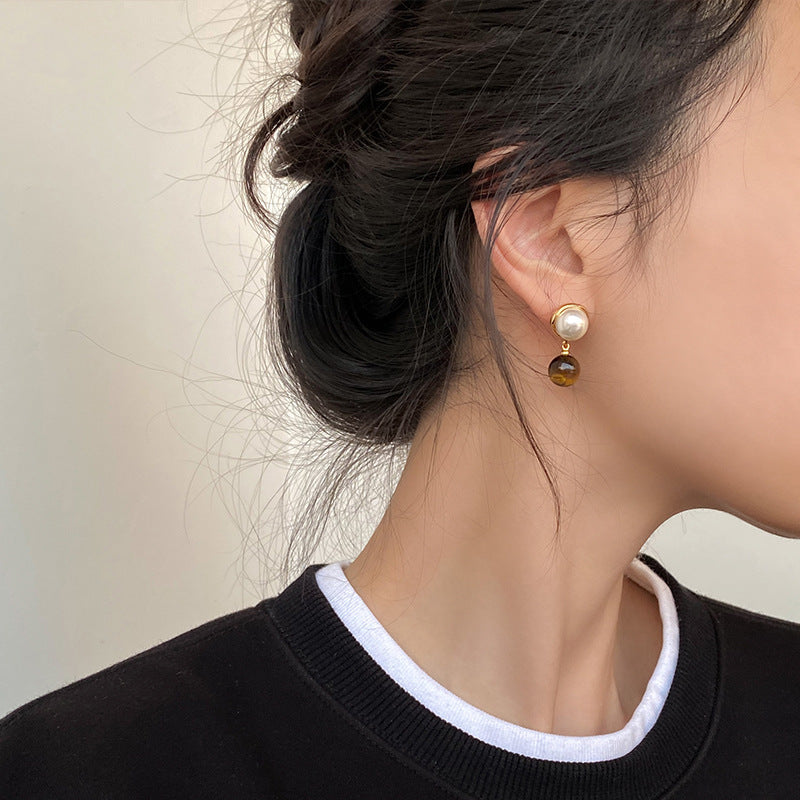 Murad Asymmetrical Tiger's Eye Pearl Earrings