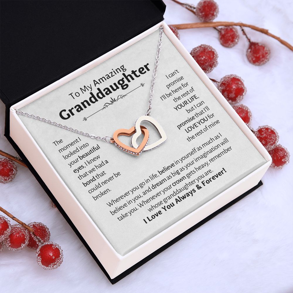 "The moment I looked into your beautiful eyes, I knew that we had a bond that could never be broken. I can't promise I'll be here for the rest of YOUR LIFE, but I can promise that I'll LOVE YOU for the rest of mine Wherever you go in life, believe in yourself as much as I believe in you, and dream as big as your imagination will take you. Whenever your crown gets heavy, remember whose granddaughter you are."