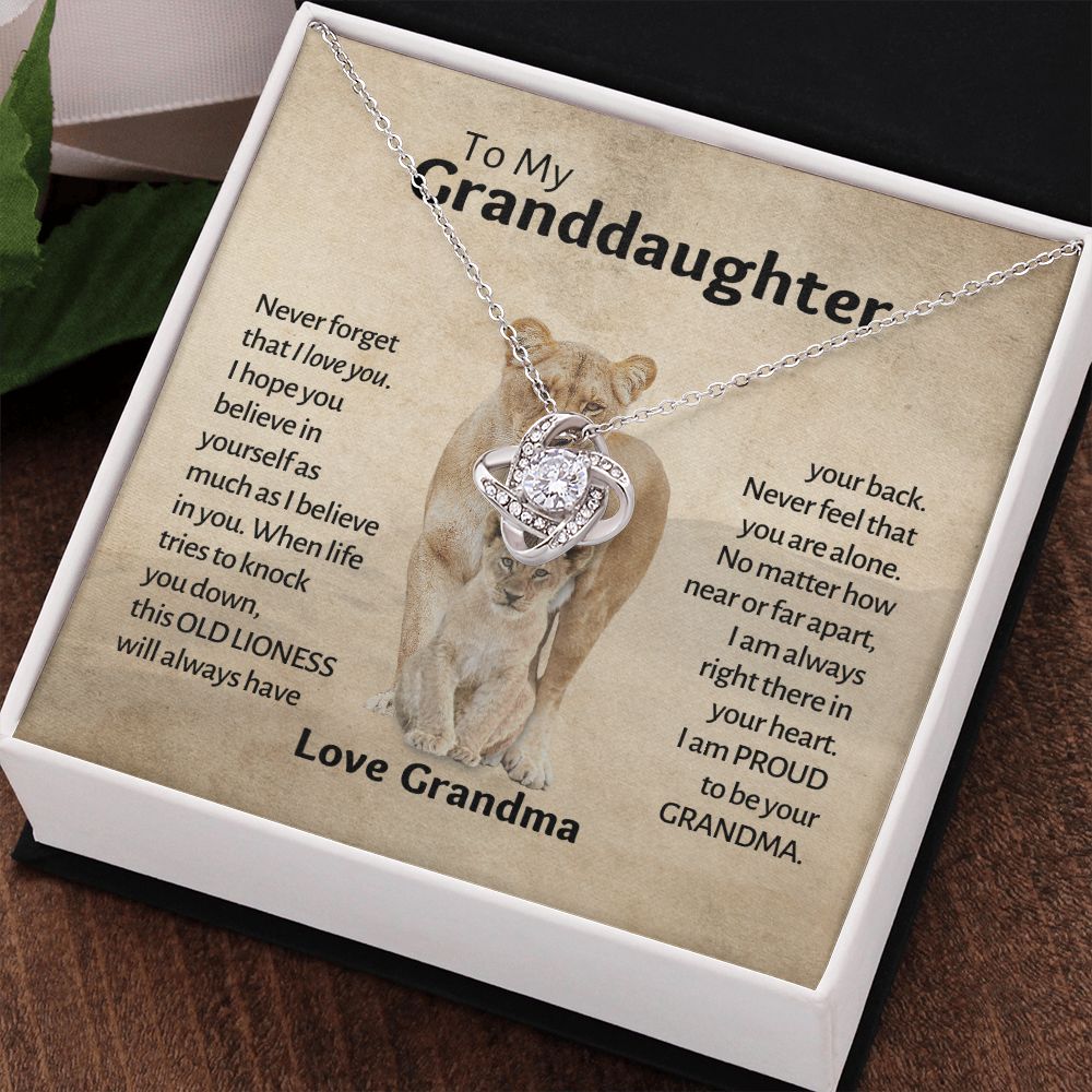 "Never forget that I love you. I hope you believe in yourself as much as I believe in you. When life tries to knock you down, this OLD LIONESS will always have your back. Never feel that you are alone. No matter how near or far apart, I am always right there in your heart. I am proud to be your GRANDMA. Love Grandma"