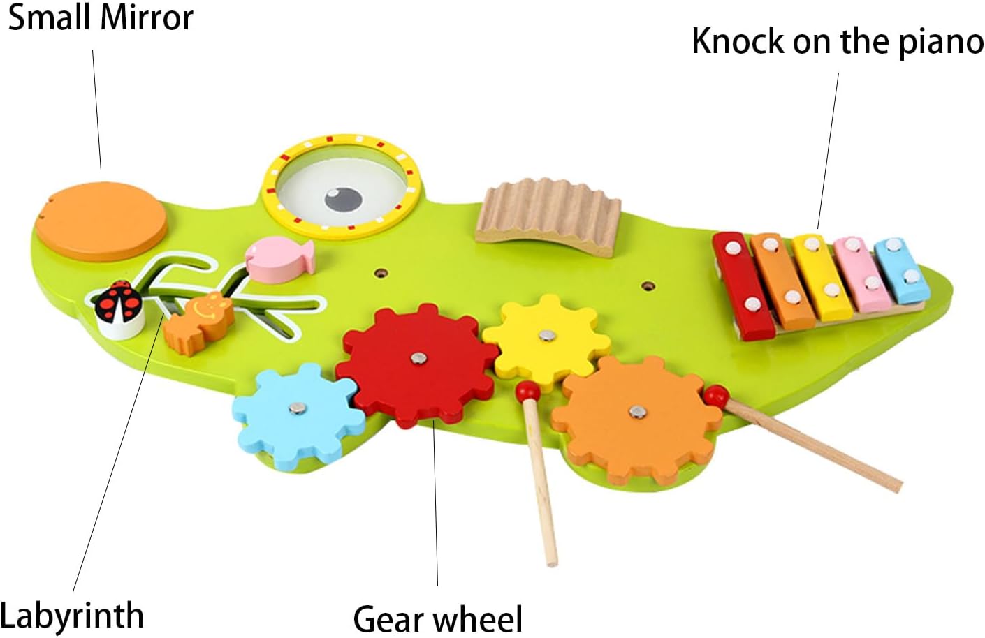 Designed for fine motor development, this crocodile-shaped busy board encourages precise hand-eye coordination. Grasping and manipulating the shapes contribute to the refinement of fine motor skills, aligning seamlessly with Montessori's holistic approach to child development.