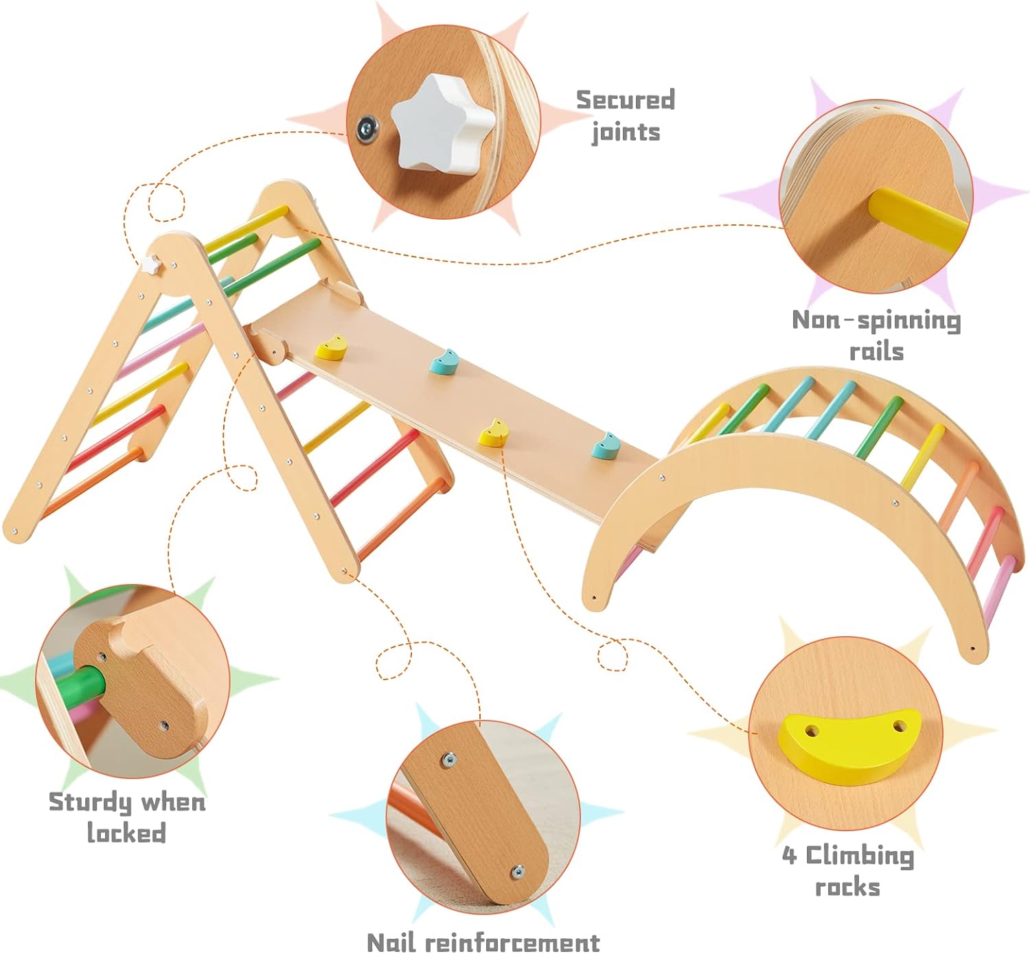 Encouraging independent exploration, it sparks curiosity and self-directed play. Children can unfold their imagination and embark on diverse climbing adventures, aligning seamlessly with Montessori's emphasis on fostering a sense of independence and initiative.