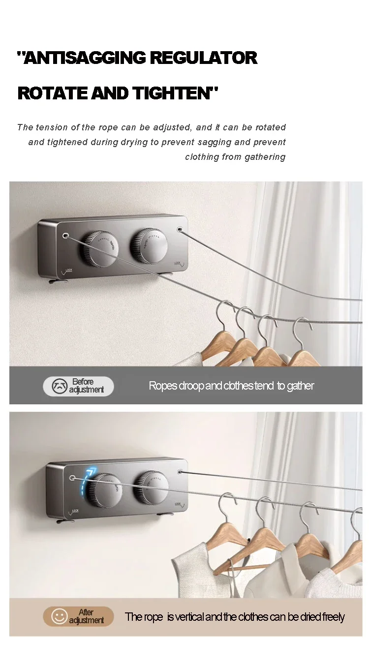 Elevate your laundry routine with the Avichic™ 5.1m Retractable Stainless Steel Clothesline, designed for modern homes that value style, durability, and space-saving functionality. Crafted from waterproof, rustproof materials, this clothesline offers a strong load-bearing capacity, perfect for drying clothes, towels, and delicates indoors or outdoors. The double rope design provides up to 13.8 feet of drying space per line, supporting up to 44 lbs, making it a reliable choice for busy households. Whether mounted on a balcony, in a laundry room, or on a patio, this retractable clothesline delivers a neat, clutter-free solution to traditional drying racks.
