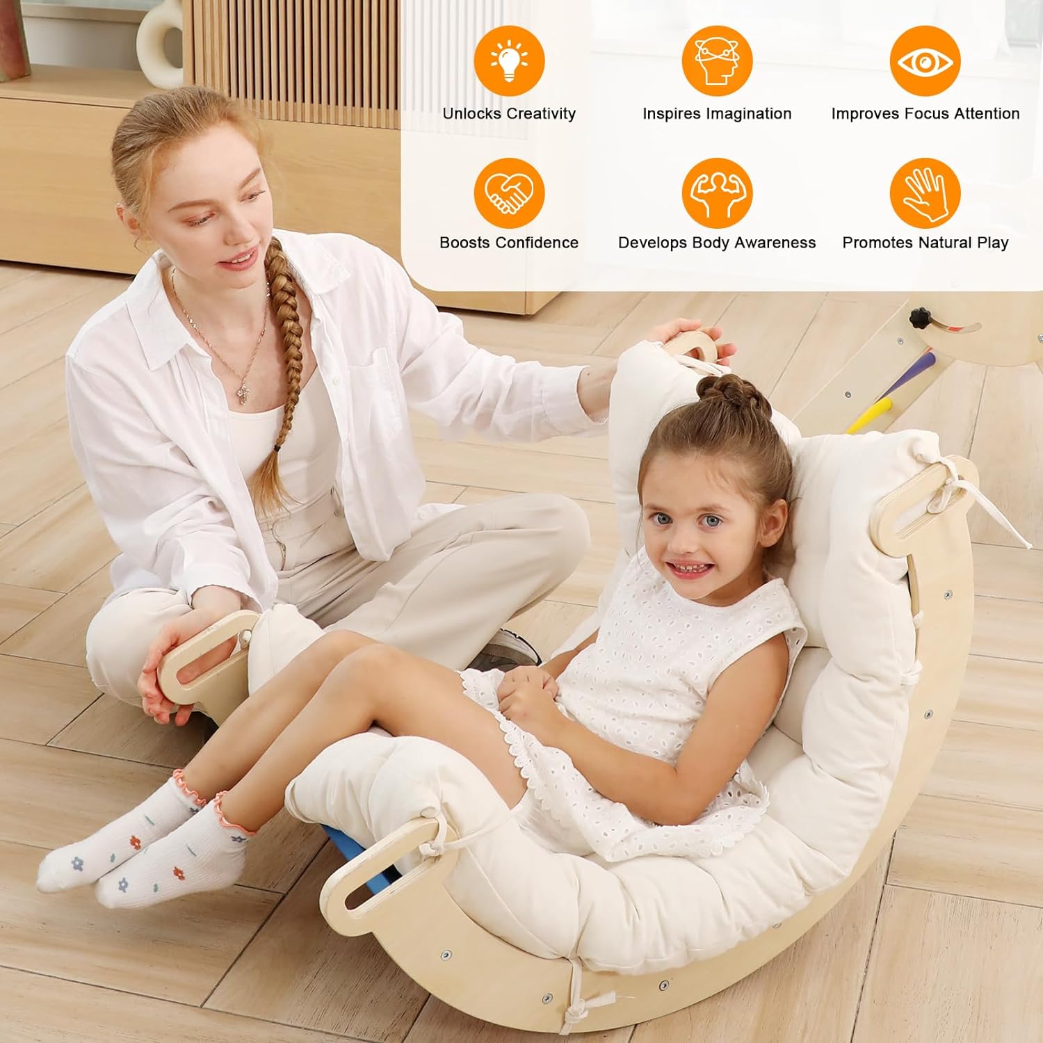 Elevate your child's playtime with the Montessori Climbing Arch and Rocker Bed, a dynamic addition meticulously crafted to align with Montessori principles of physical development and active exploration. This climbing arch transforms any play area into an organized and adventurous learning space for your little adventurer.