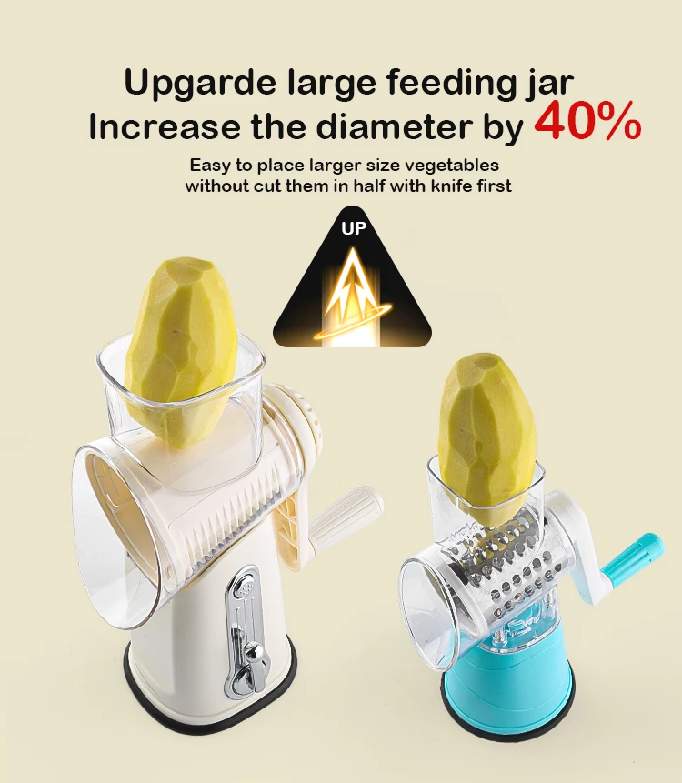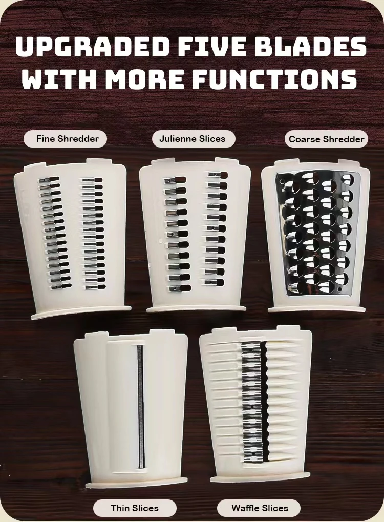 Upgrade your kitchen tools with this multifunctional hand crank grater! Perfect for shredding cheese, slicing vegetables, and grating fruits – all in one compact tool. The powerful suction base keeps the grater stable during use, while the detachable parts make cleaning quick and easy.