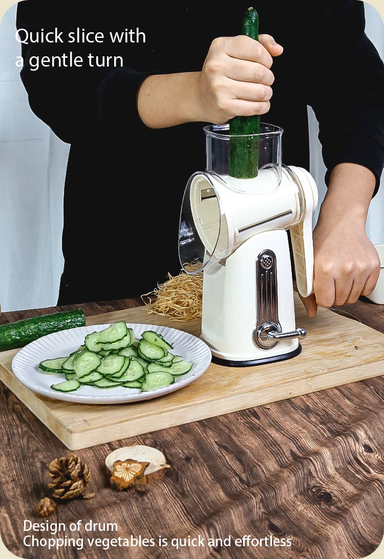 3-in-1 Hand Crank Vegetable Grater – Manual Cheese Shredder & Slicer with Stainless Steel Blades
