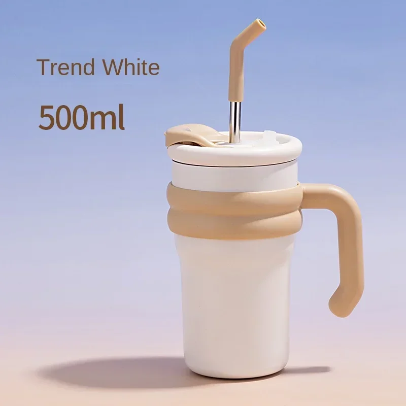 New summer minimalist double-layer anti drop handle cup stainless steel cartoon car cup portable dual drink thermos cup