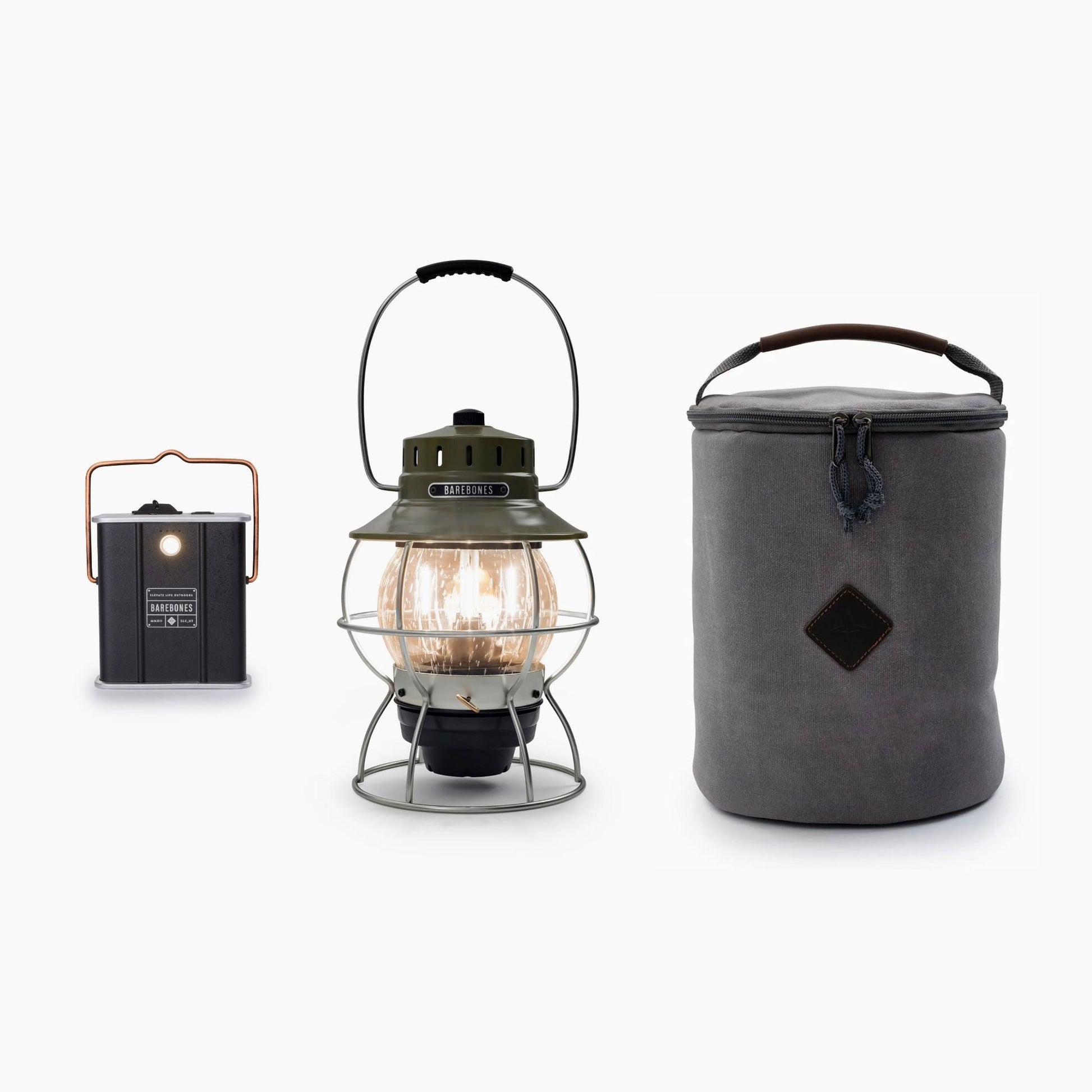 Never be left in the dark with the Railroad Lantern Travel kit. This package starts with our top-selling Railroad Lantern, a contemporary take on a beloved Union Pacific classic. Its seeded glass and copper accents add a unique touch to any dinner table or campsite. Powered by batteries or USB, it offers up to 100+ hours of low brightness or 3.5 hours on high, featuring an adjustable LED Edison-style bulb for a warm, timeless glow.