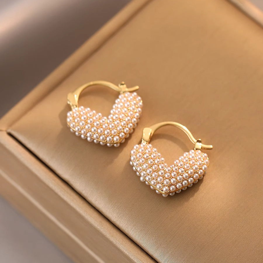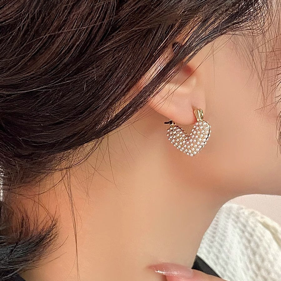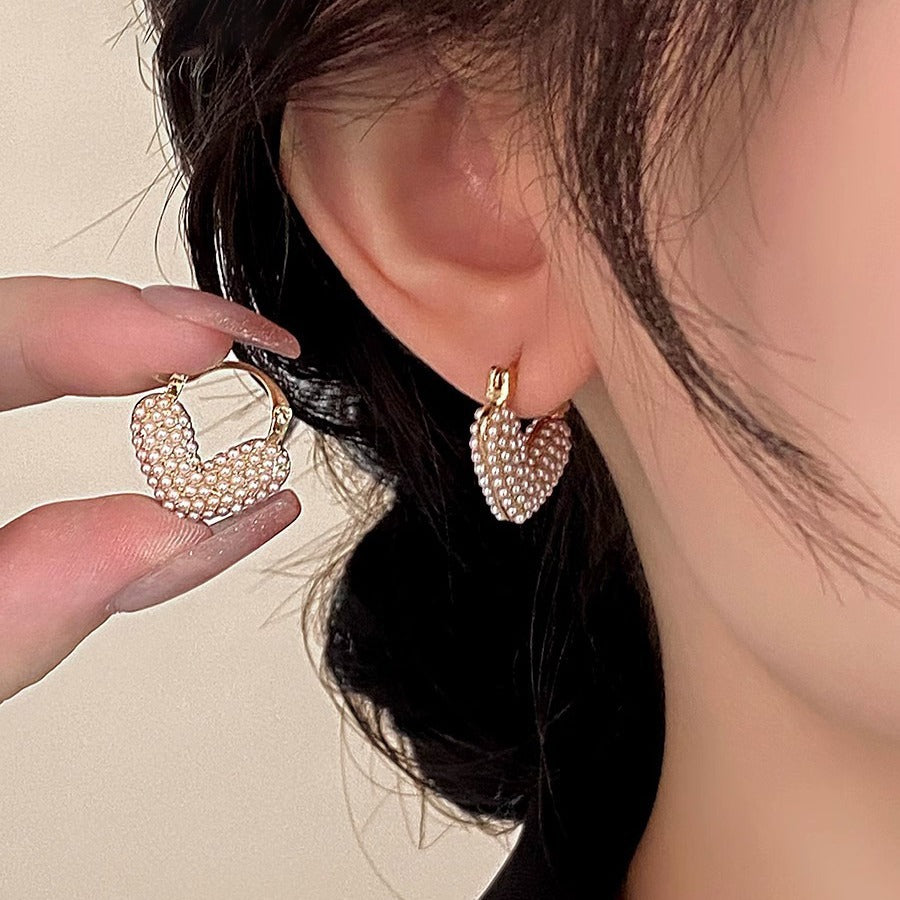 Pearl heart earrings are a type of jewelry that typically combine pearls and heart-shaped design elements, showcasing elegance and romance. These earrings usually feature: