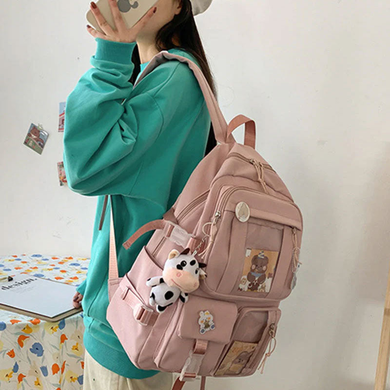 Give your child's school days a touch of individuality with our backpack's personalized pin attachments, letting them stand out with flair and charm while keeping everything neatly organized and secure.