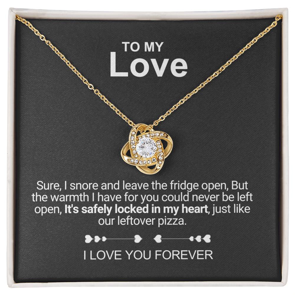 Imagine her reaction receiving this beautiful Love Knot Necklace. Representing an unbreakable bond between two souls, this piece features a beautiful pendant embellished with premium cubic zirconia crystals. Surprise your loved one with this gorgeous gift today!
