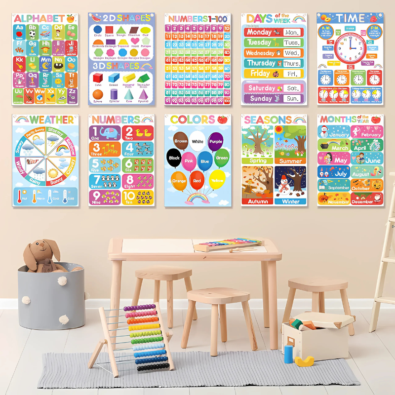 With bright and engaging posters covering essentials like letters, numbers, colors, and more, this set makes it easy for toddlers and preschoolers to build early skills in a fun, interactive way. No need for complex teaching tools; these posters make learning simple and enjoyable, sparking curiosity in young minds right from the start!