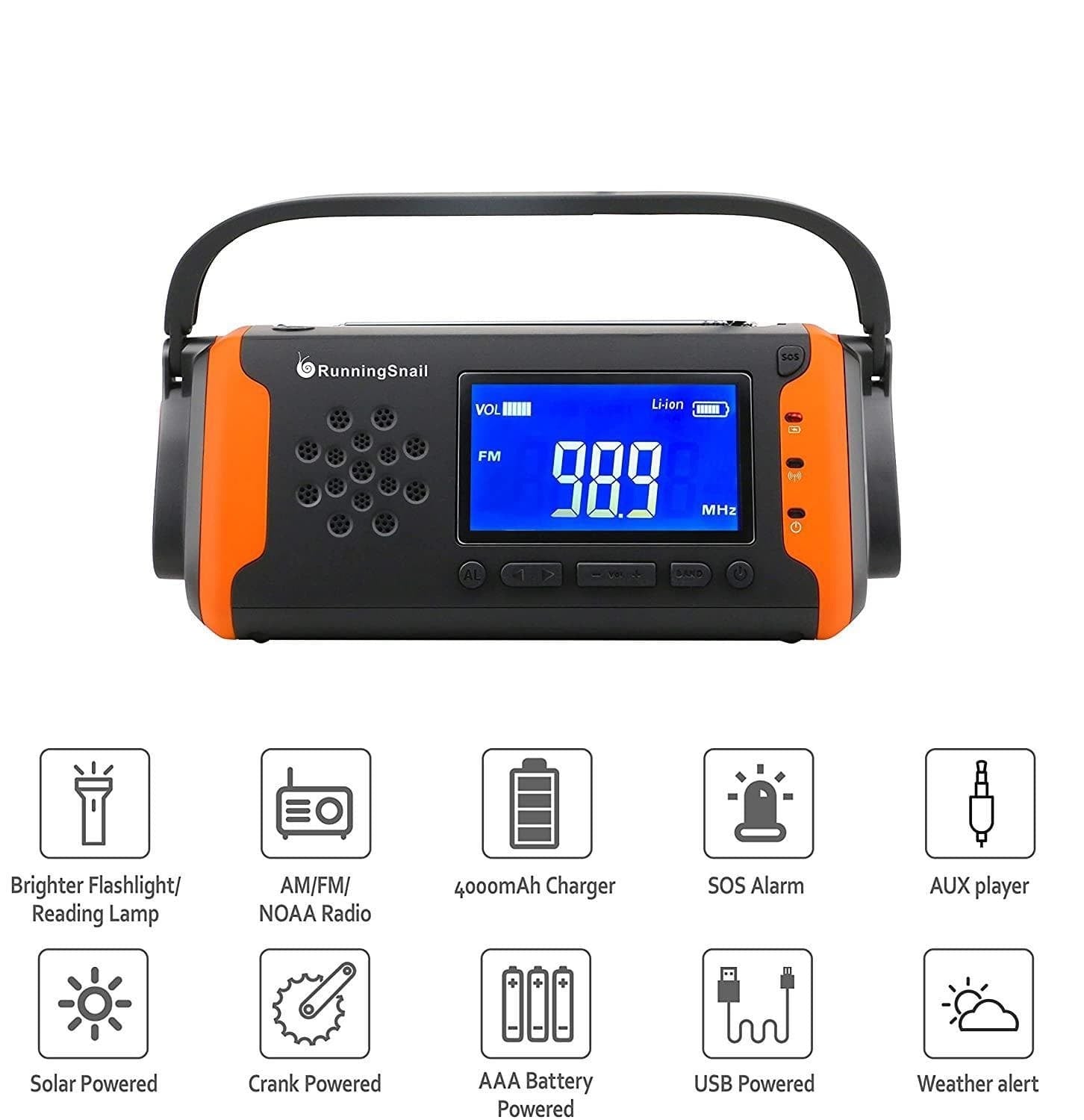 • A Must-Have Emergency Radio With this AM/FM & NOAA weather radio around, it will broadcast the latest emergency weather alerts in your areas such as hurricanes, tornadoes, and severe storms, emergency radio keep your household prepared for the unexpected weather emergency, up to 10 hours of playtime on a full charge.