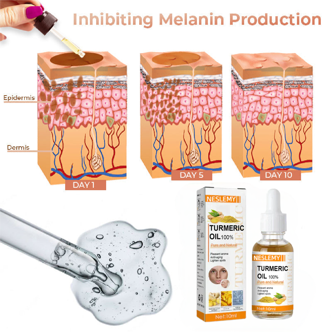 NESLEMY™ Turmeric Spot Repair Serum contain active ingredients that help to lighten hyperpigmentation by reducing the production of melanin in the skin, breaking up existing melanin clusters, and promoting the growth of new, healthy skin cells.